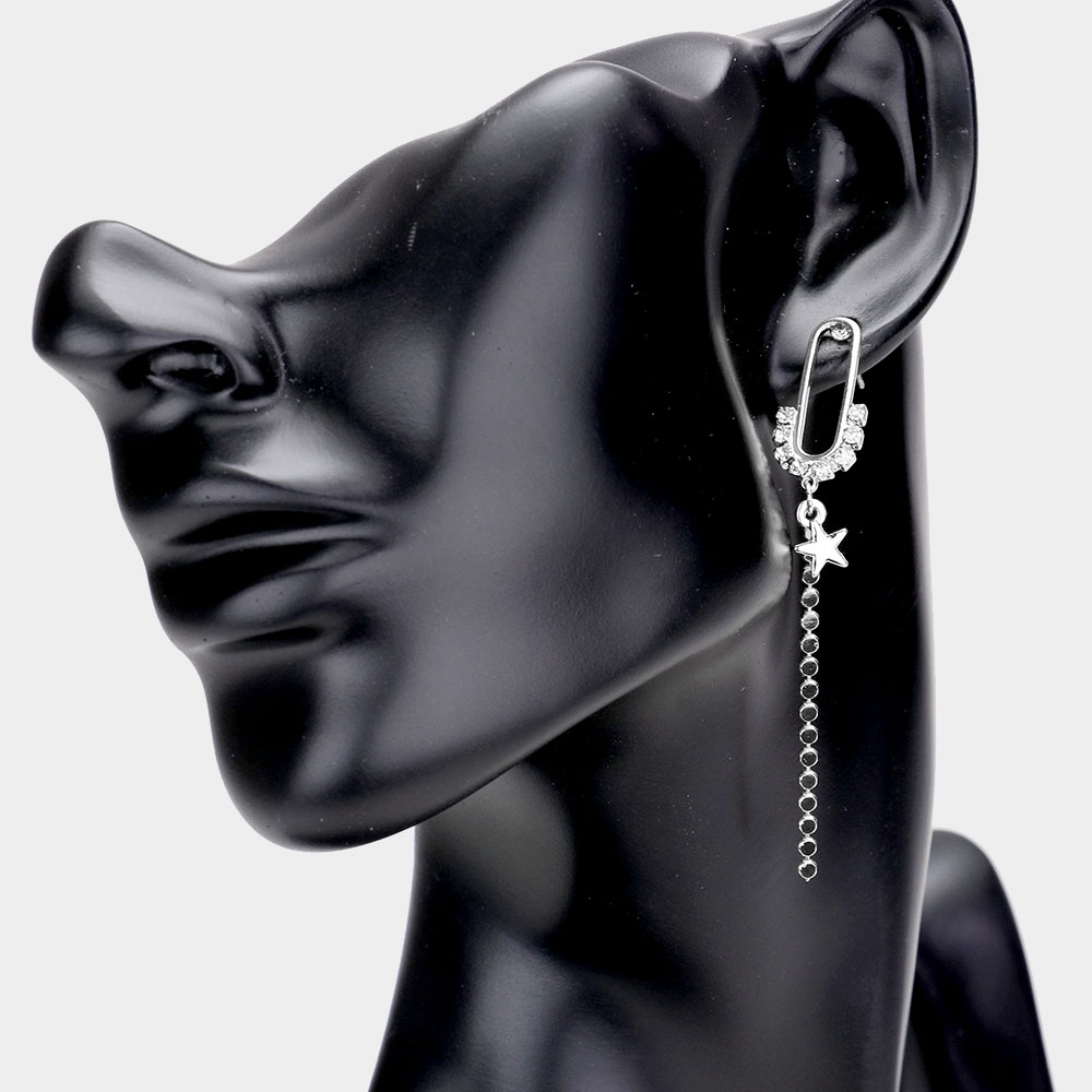 Rhinestone Embellished Safety Pin Star Pointed Drop Earrings