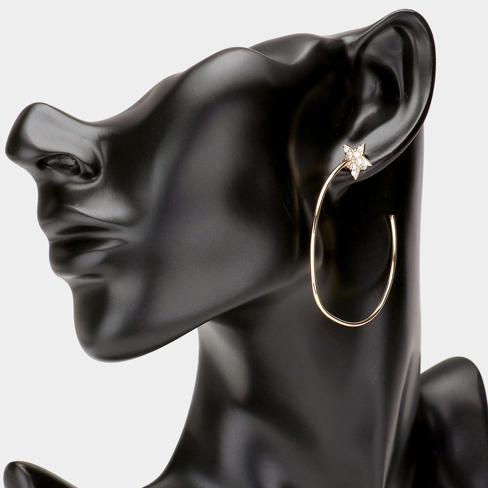 Rhinestone Embellished Star Brass Metal Hoop Earrings