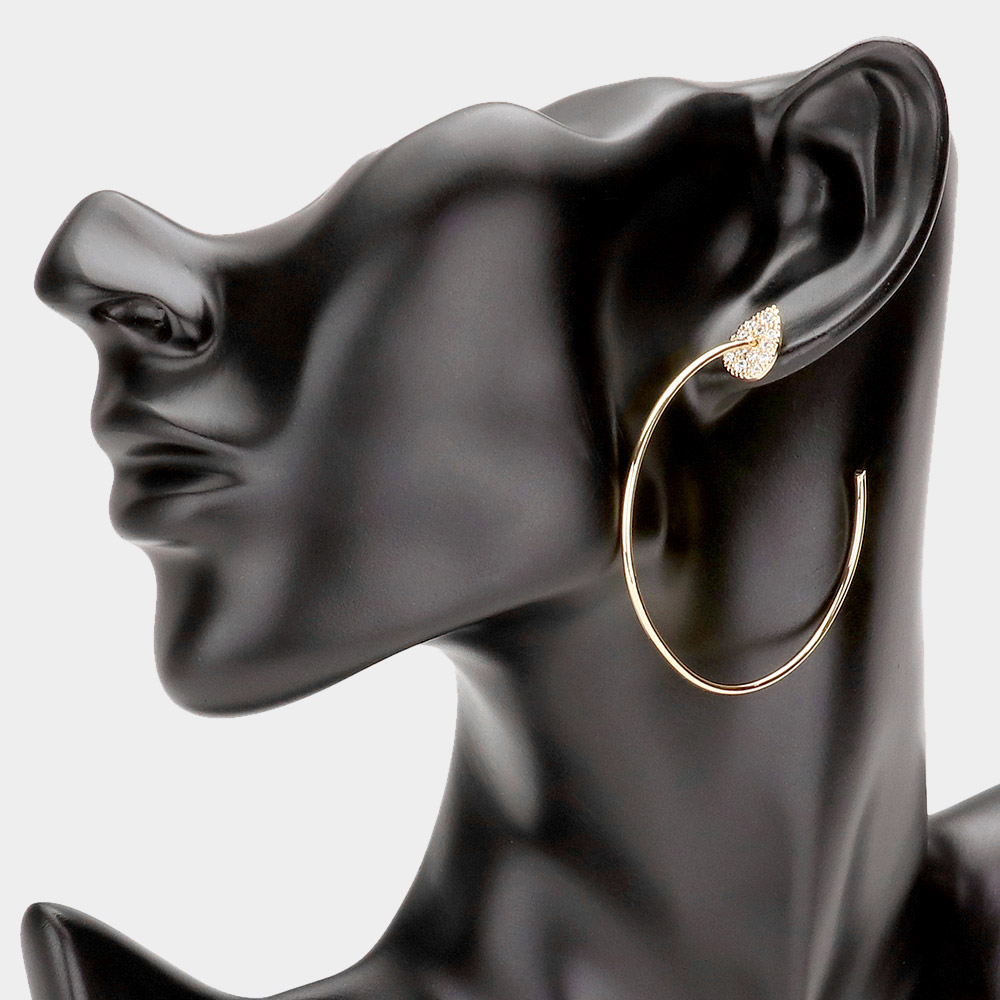Rhinestone Embellished Teardrop Brass Metal Hoop Earrings