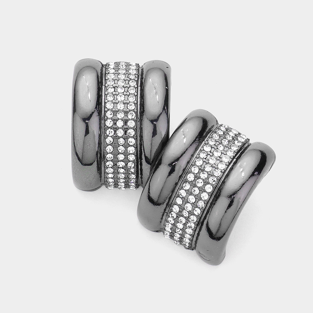 Rhinestone Paved Accented Metal Curved Rectangle Earrings