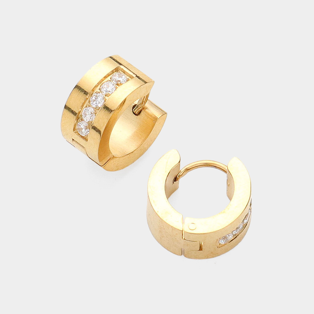 Round CZ Stone Paved Huggie Hoop Earrings