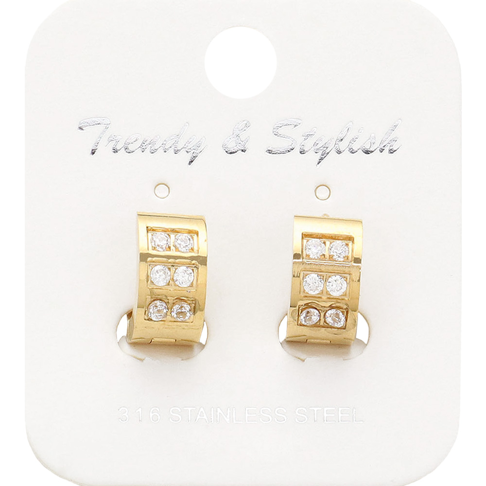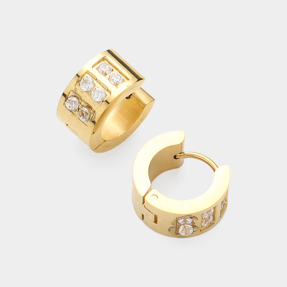 Round CZ Stone Paved Stainless Steel Huggie Hoop Earrings