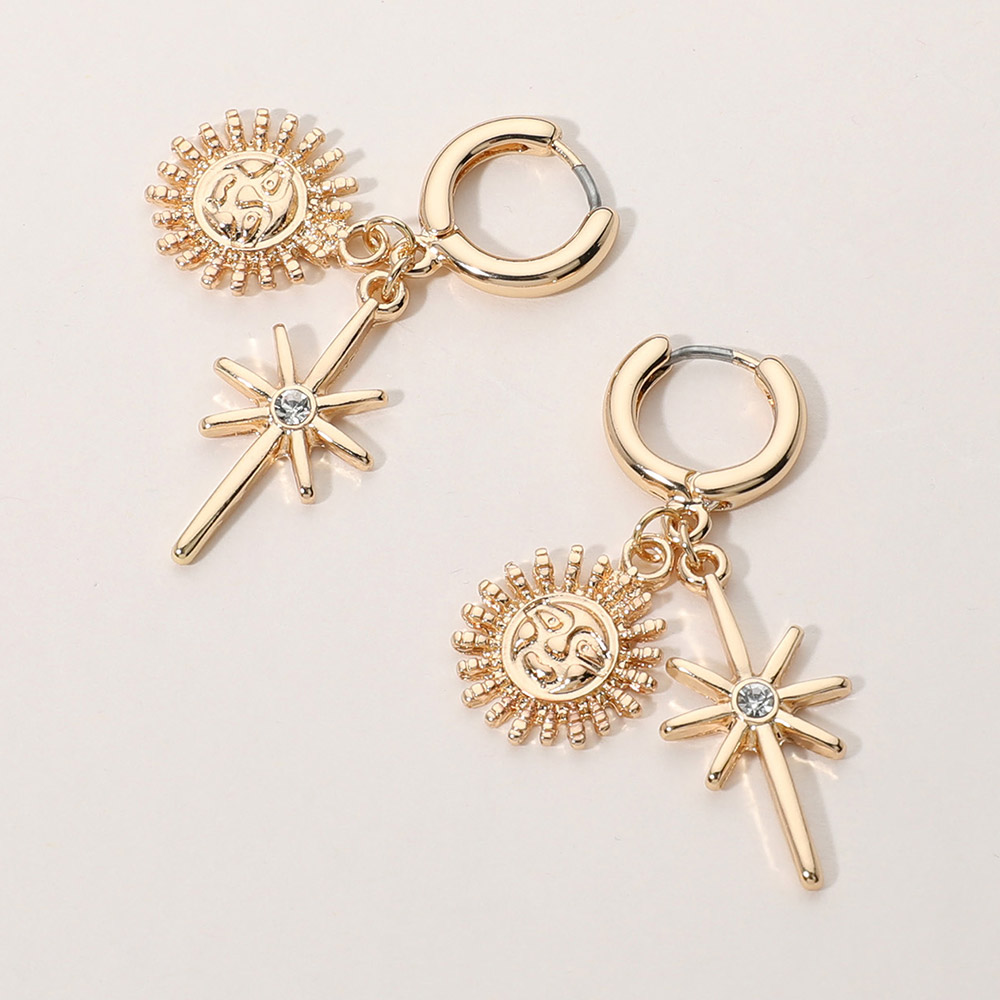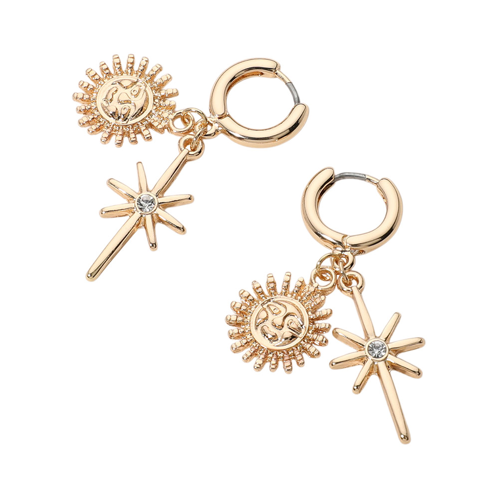 SECERT BOX_Stainless Steel Starburst Sun Charm Dangle Huggie Hoop Earrings