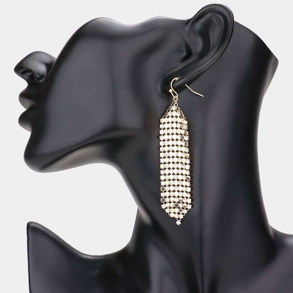 Secret Box _ Bubble Stone Embellished Mesh Chain Dangle Earrings