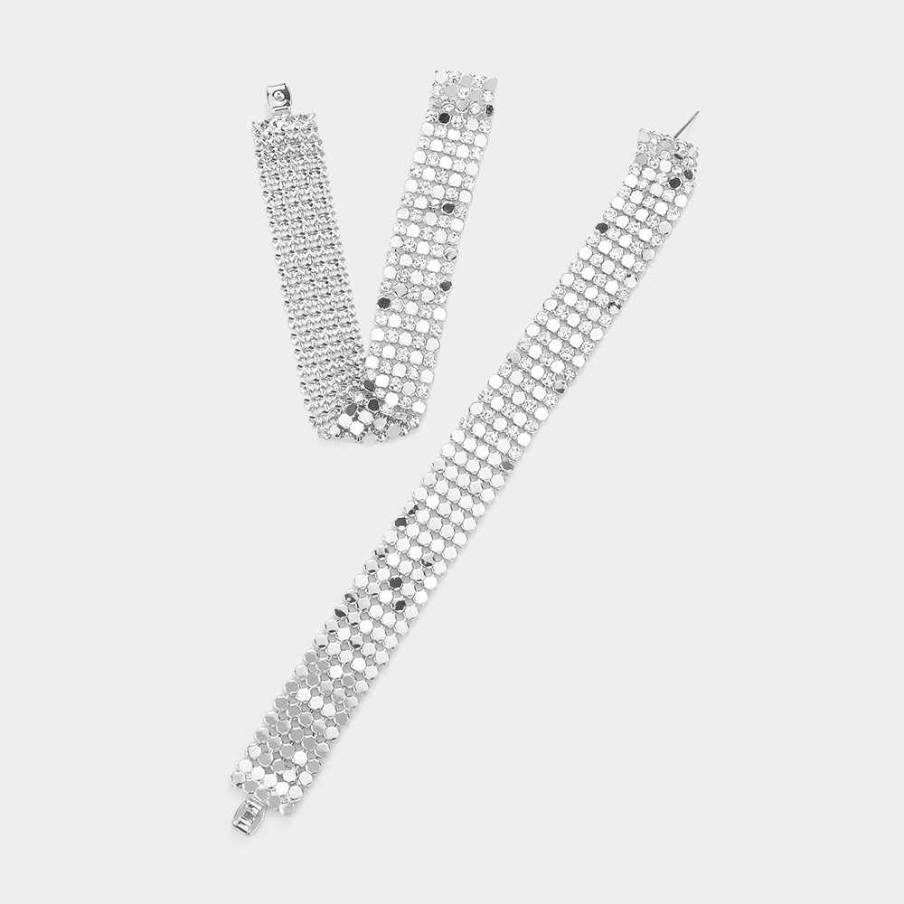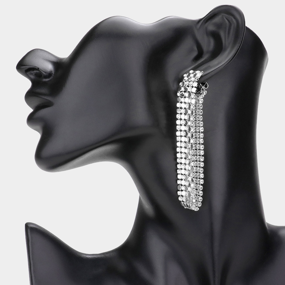 Secret Box _ Bubble Stone Embellished Mesh Chain Dangle Earrings