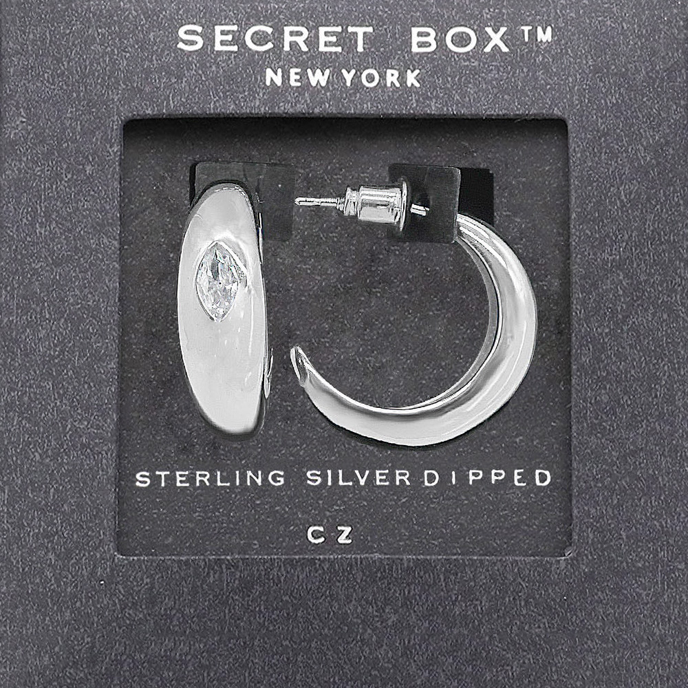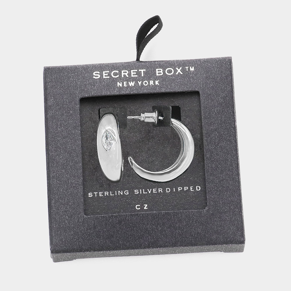 Secret Box _ Sterling Silver Dipped CZ Marquise Pointed Hoop Earrings