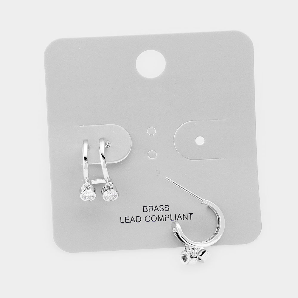 Split Brass Metal Half Hoop Rhinestone Dangle Earrings