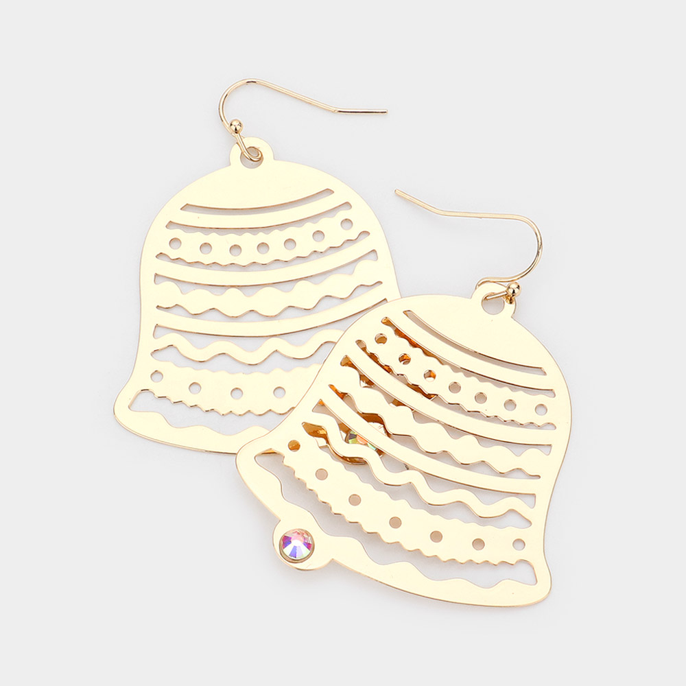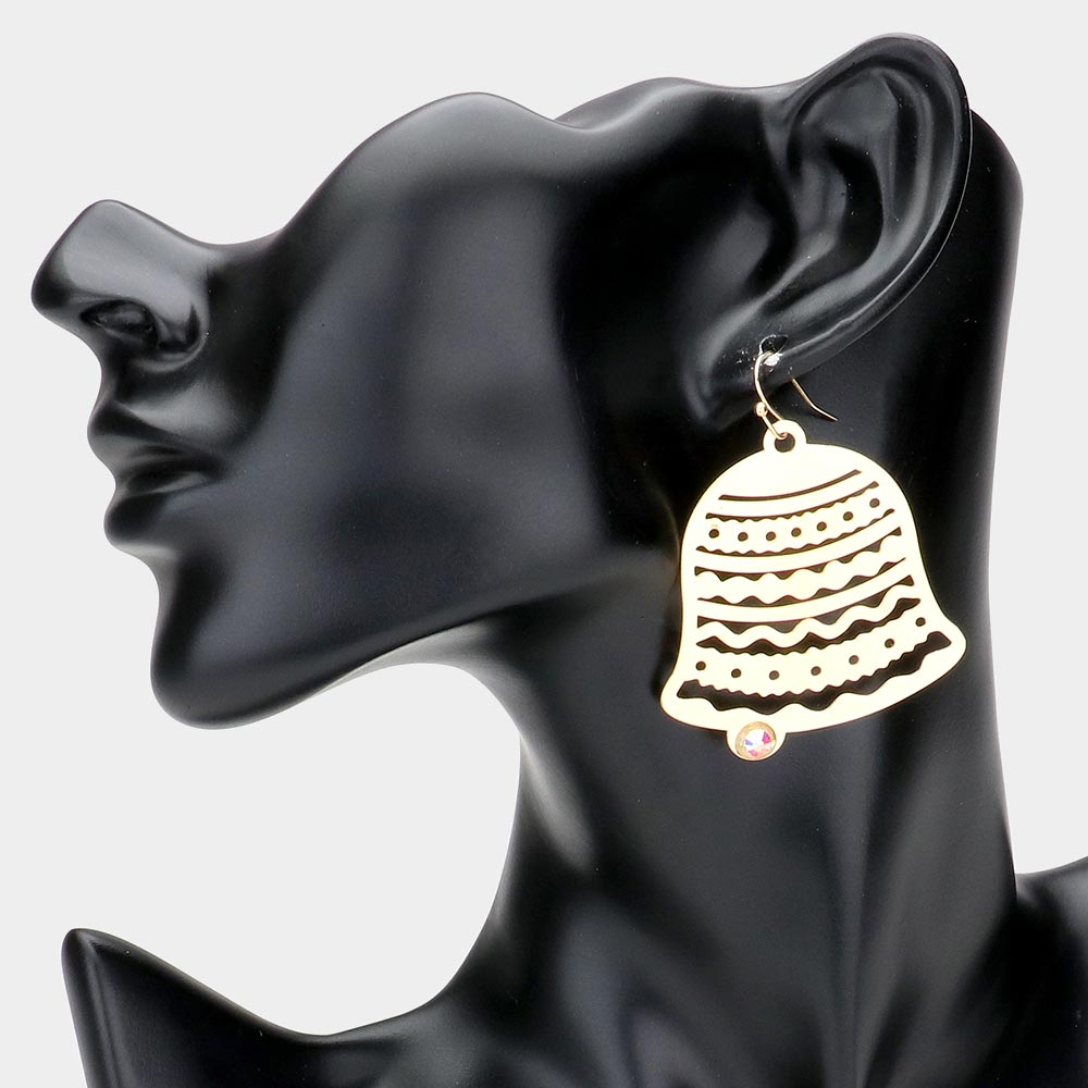 Stone Embellished Brass Metal Jingle Bell Dangle Earrings