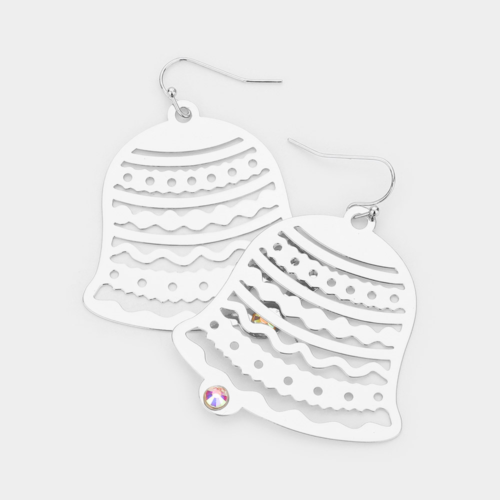 Stone Embellished Brass Metal Jingle Bell Dangle Earrings