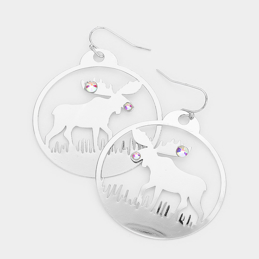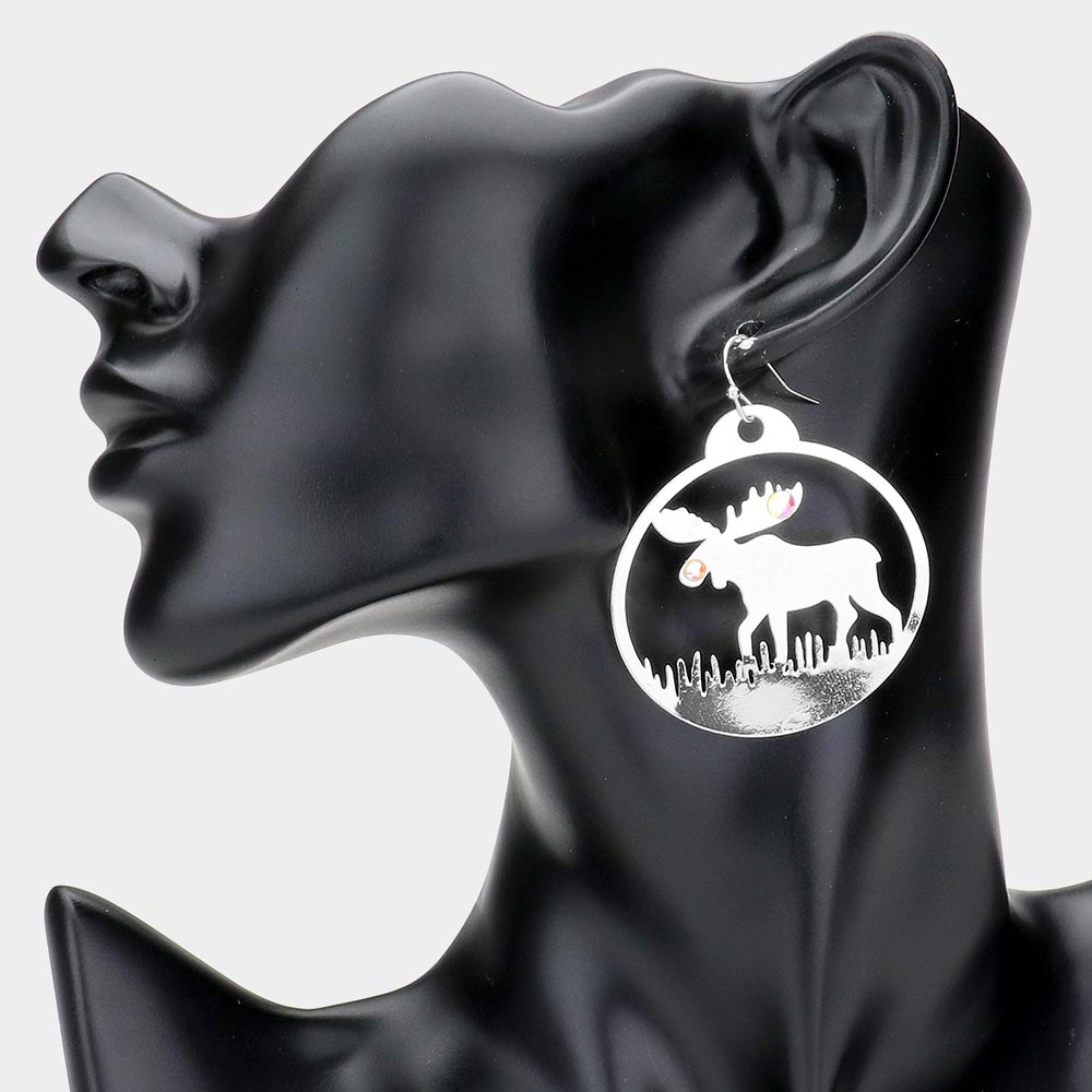 Stone Embellished Rudolph Accented Brass Metal Round Dangle Earrings