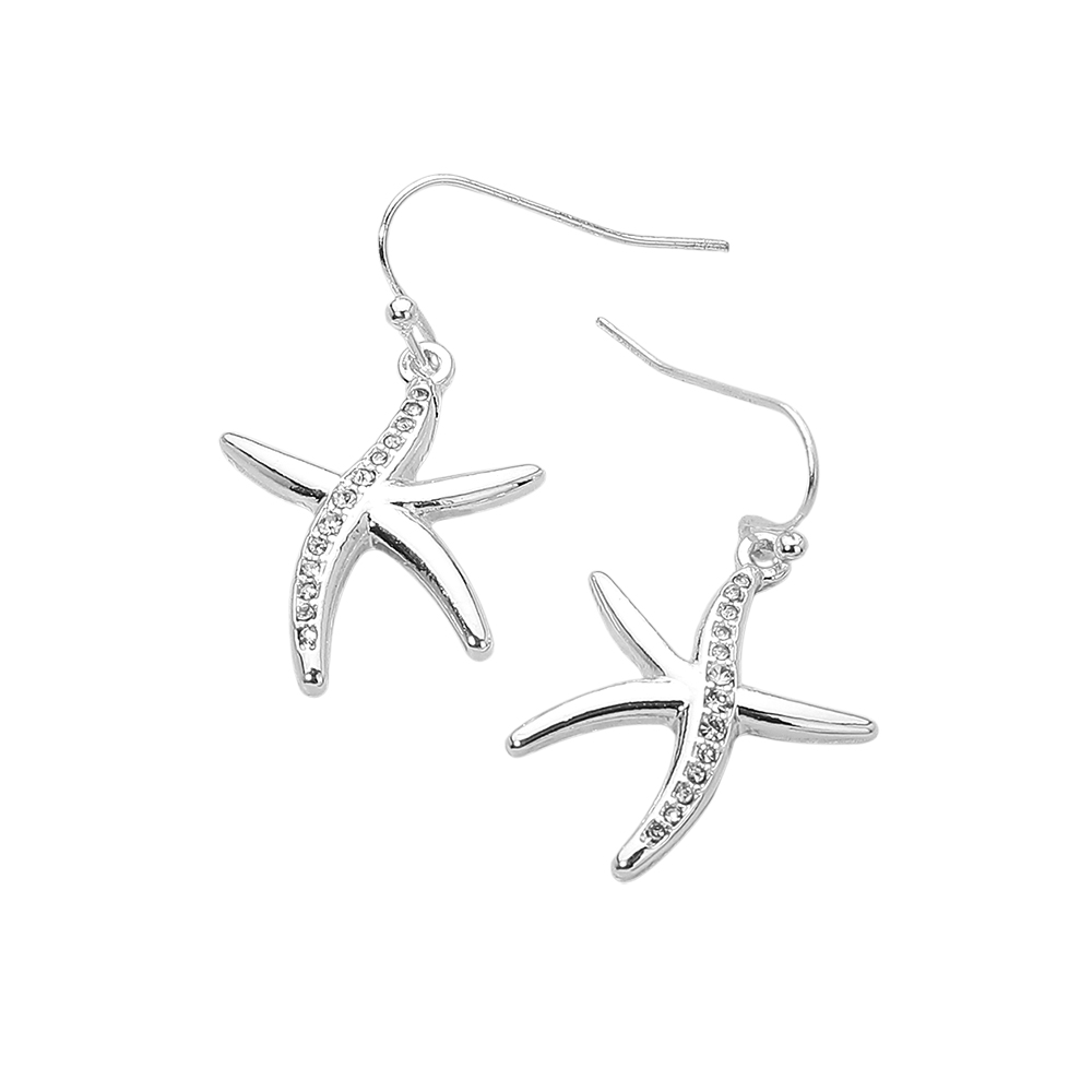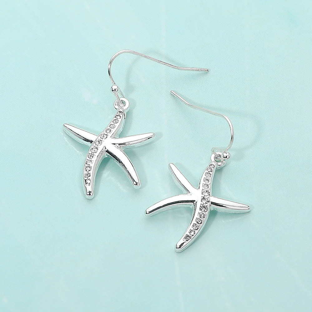 • Ocean inspired starfish dangle earrings designed with a graceful hook silhouette that adds movement and charm. A playful yet polished accessory ideal for beach themed styling, summer outfits, vacation looks, and boutique gift assortments seeking nature inspired statement jewelry.