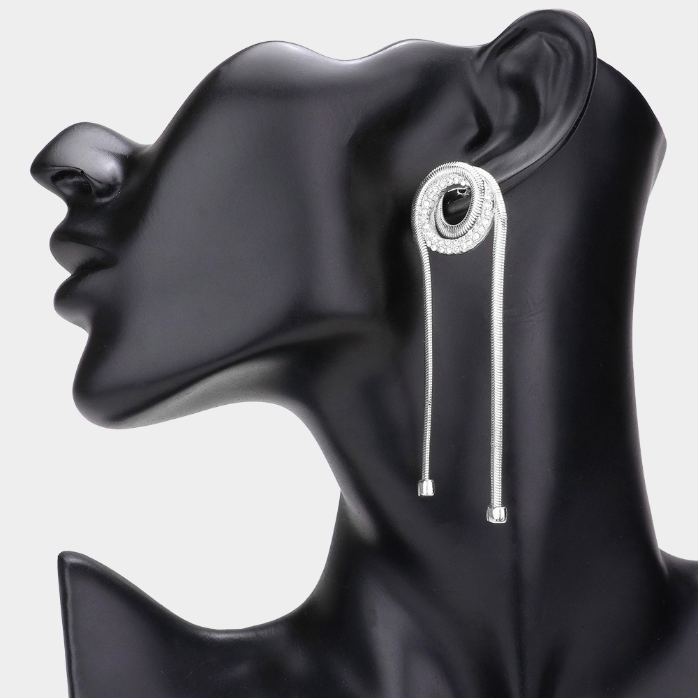 Swirl Rhinestone Embellished Metal Chain Dangle Earrings