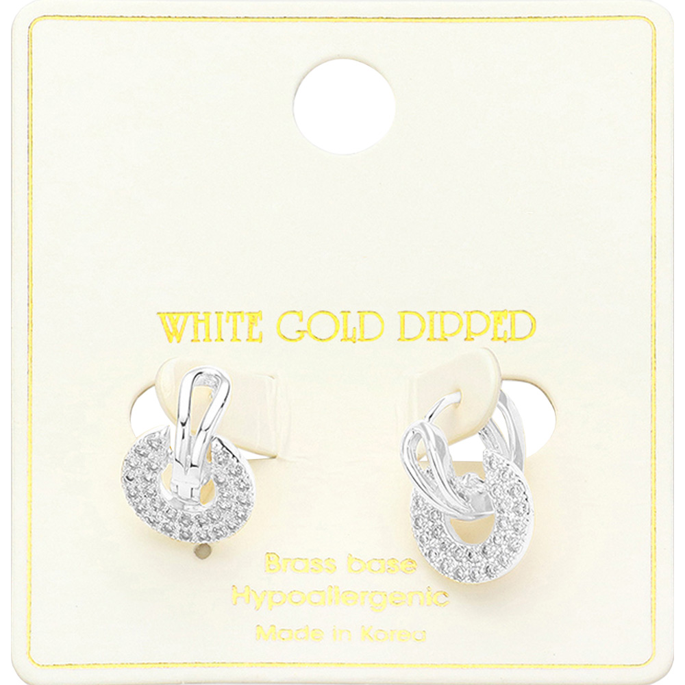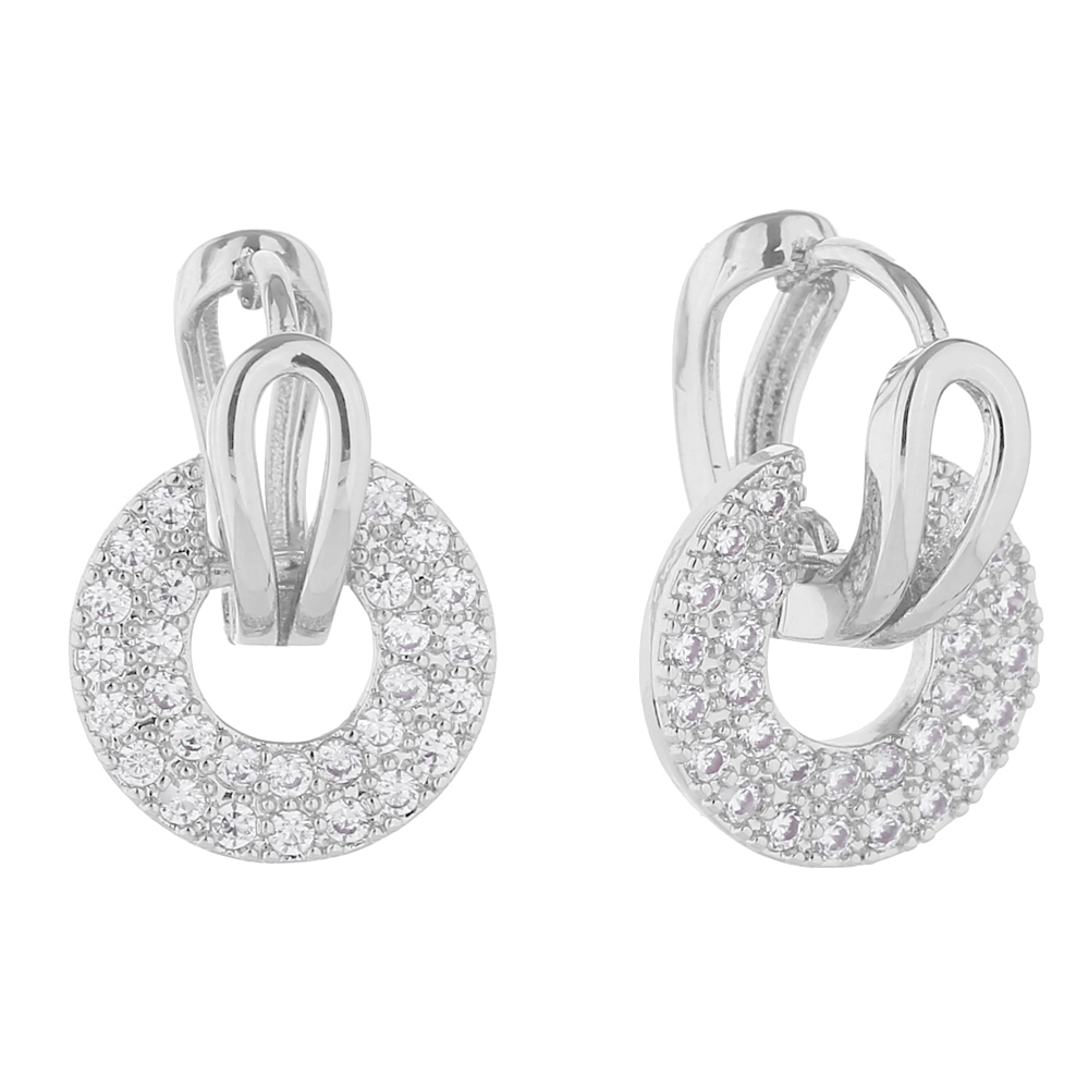White Gold Dipped Circle Drop CZ Paved Earrings