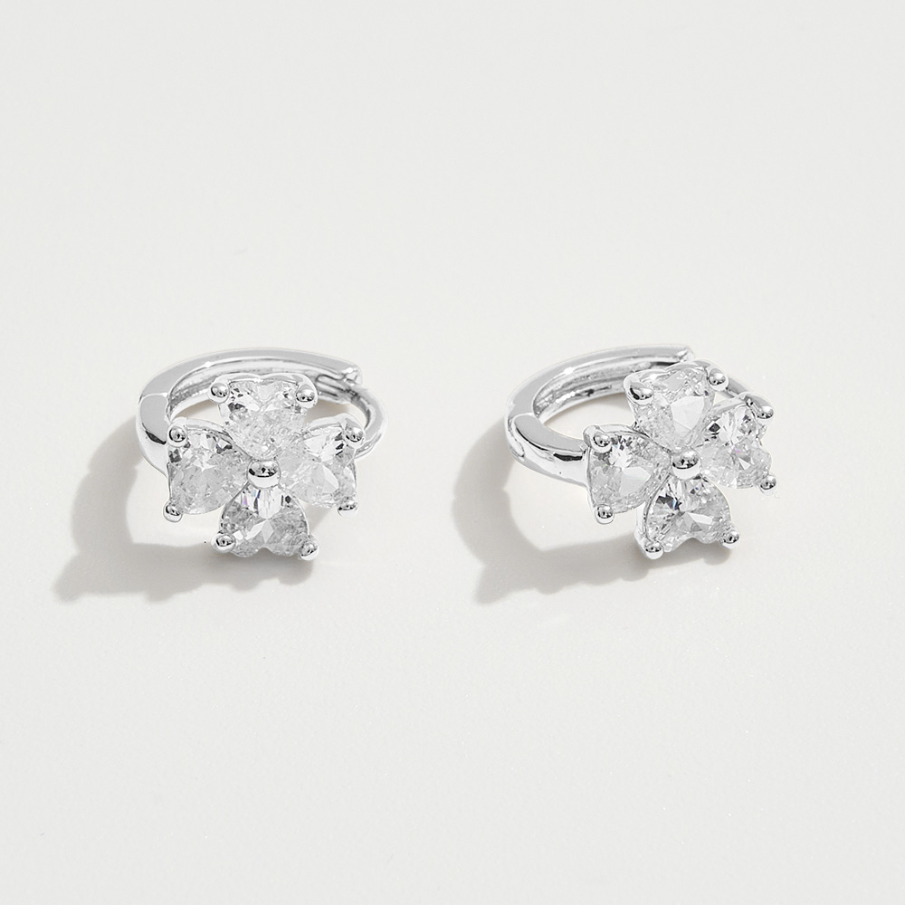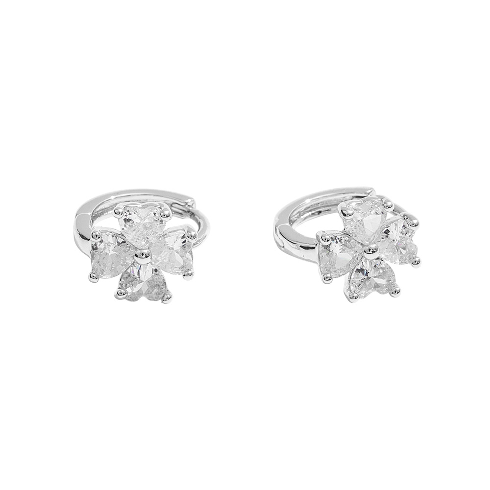 White Gold Dipped CZ Floral Stone Mini Huggie Hoop Earrings White Gold Dipped CZ Floral Stone Mini Huggie Hoop Earrings