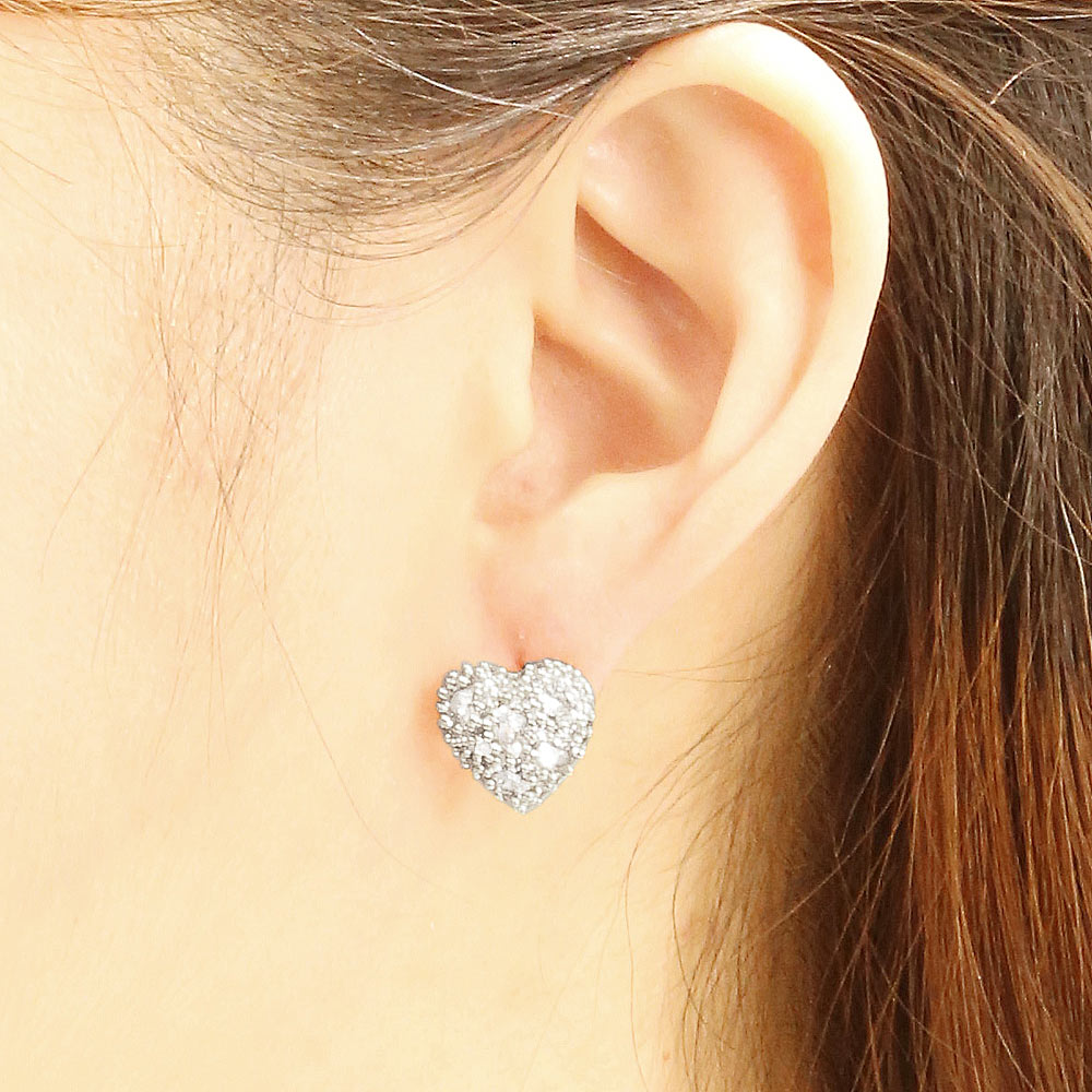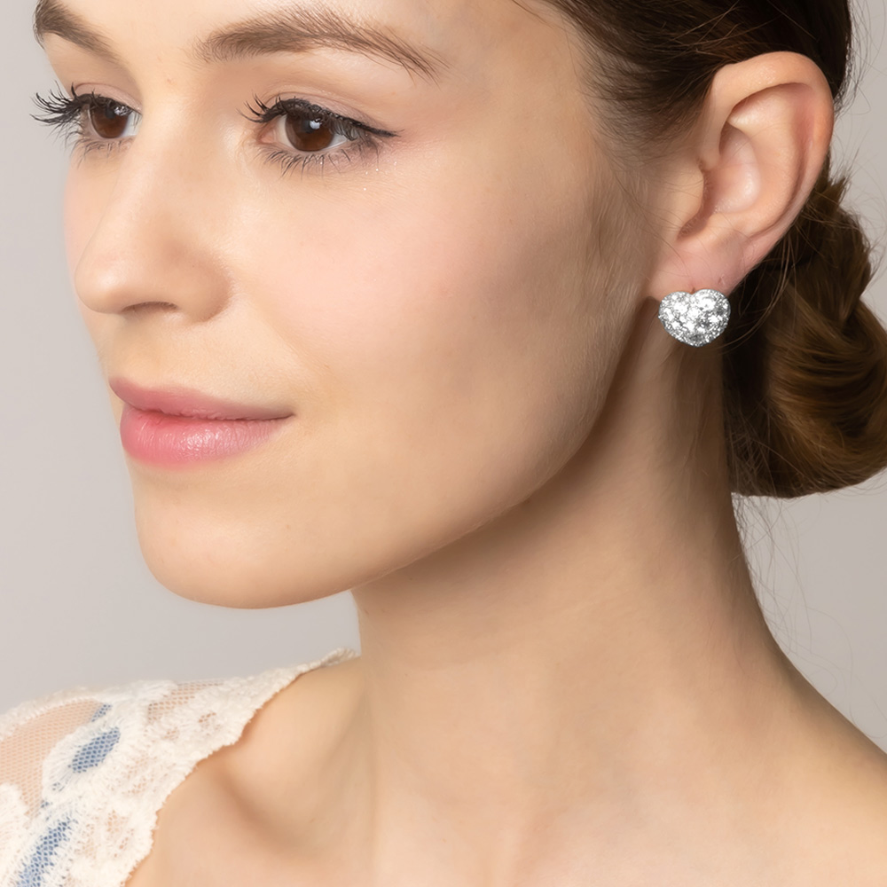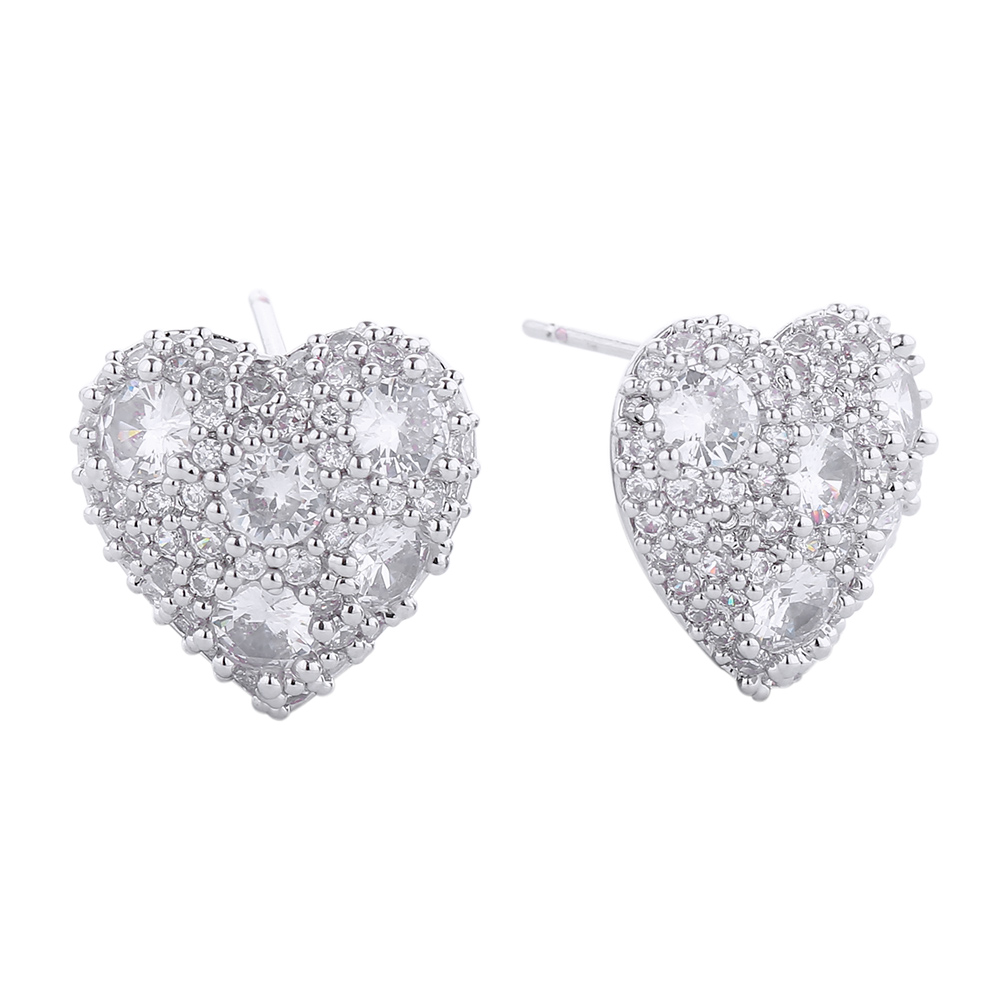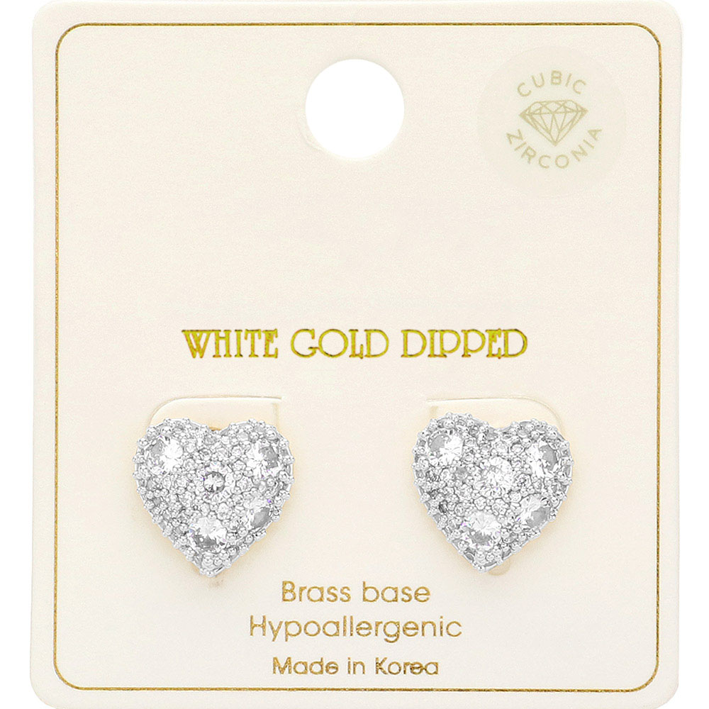 White Gold Dipped CZ Stone Paved Heart Stud Earrings