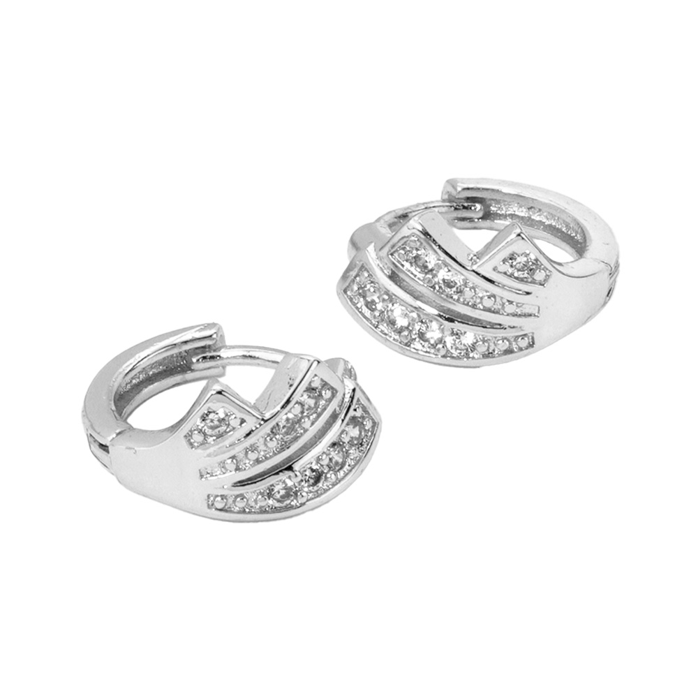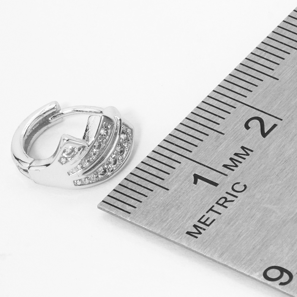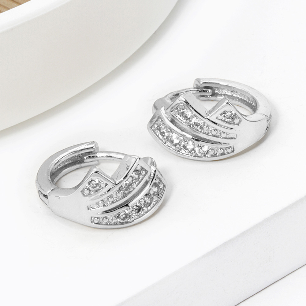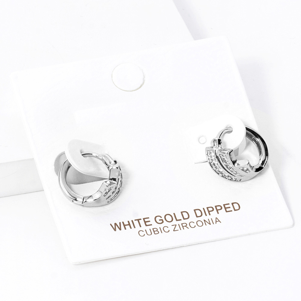 White Gold Dipped CZ Stone Paved Huggie Hoop Earrings