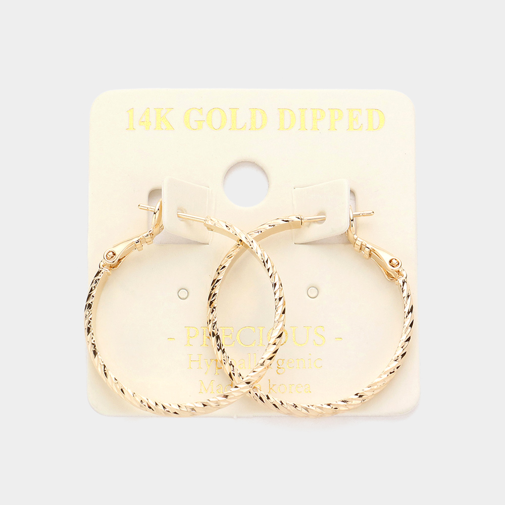 14K Gold Dipped 1.25 Inch Textured Metal Hoop Earrings