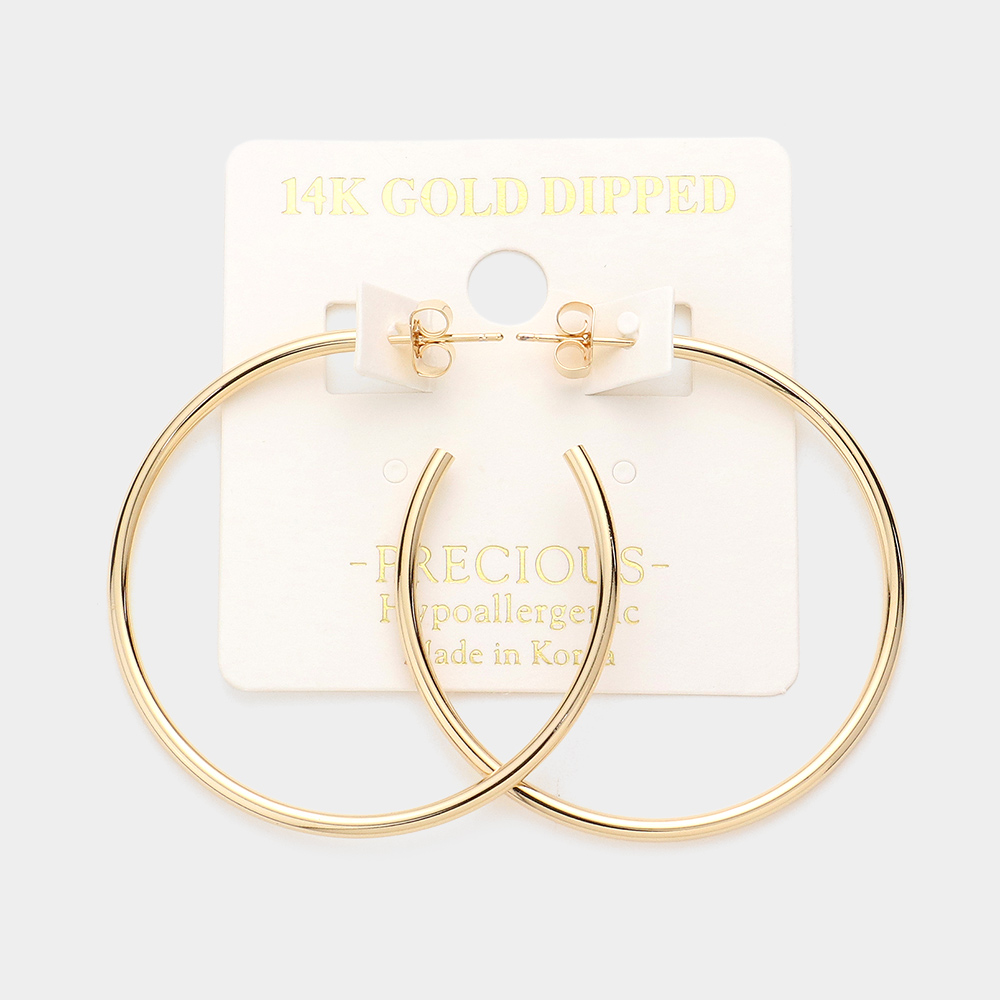 14K Gold Dipped 2.1 Inch Metal Hoop Earrings