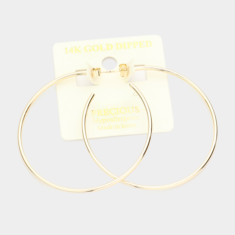 14K Gold Dipped 2.1 Inch Metal Hoop Earrings