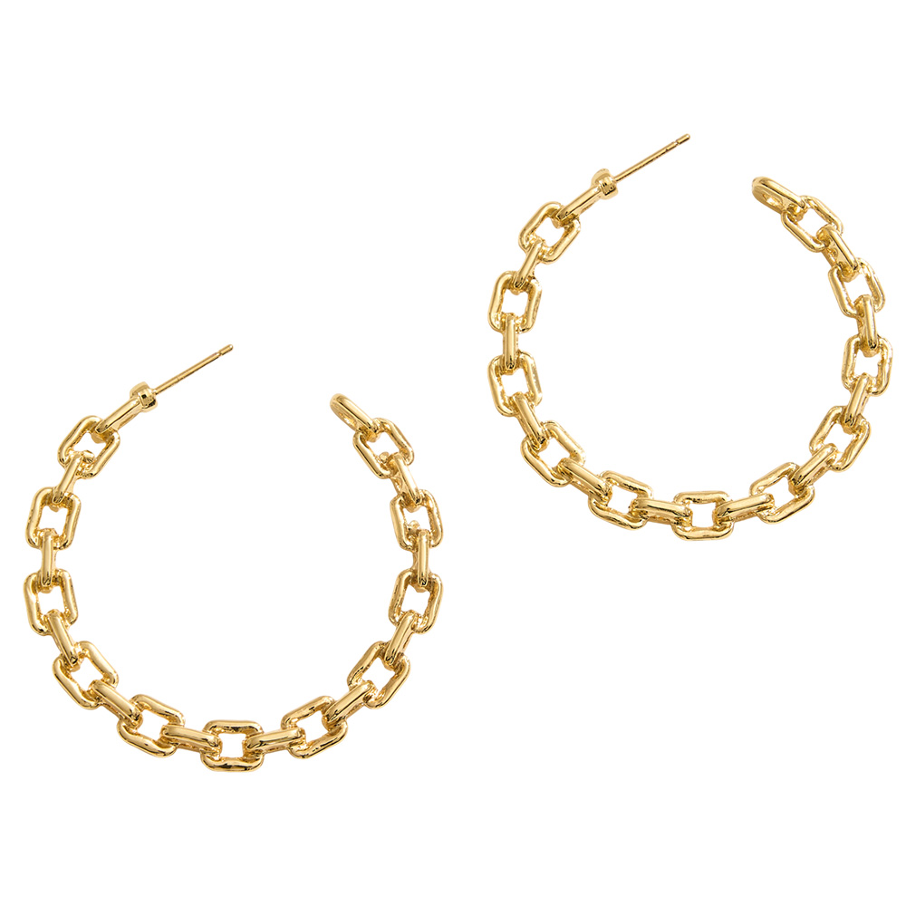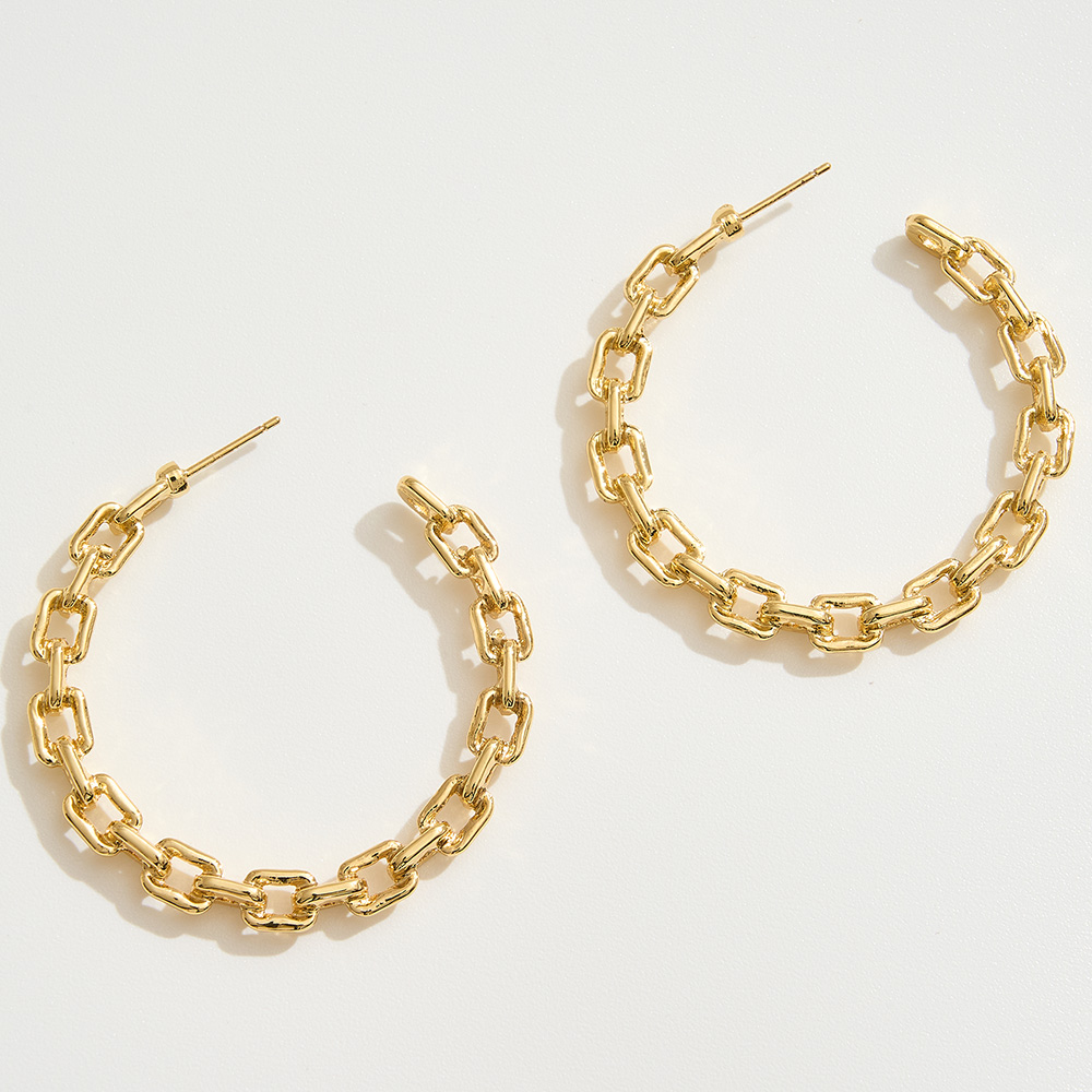 • Make a statement with these chain-link hoop earrings, designed with interlocking links that bring a modern edge to a classic silhouette. Their bold structure offers both strength and elegance, making them a versatile piece for everyday styling or standout looks.