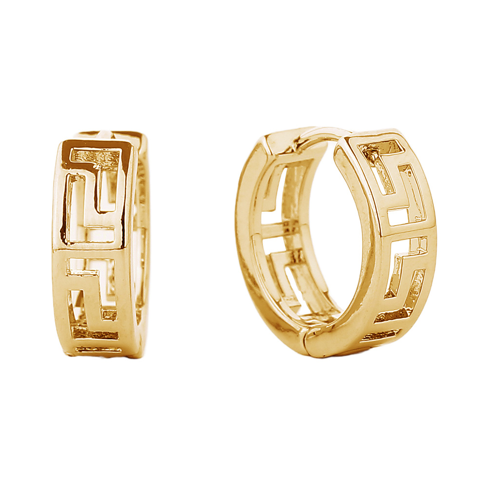 Details • Size : 0.6" X 0.6" X 0.2" • Huggie Back • Elegant hoop earrings featuring a sleek geometric cutout pattern that blends contemporary style with timeless appeal. Lightweight yet bold, these versatile hoops add a touch of sophistication to everyday looks or evening outfits. • Brass • Gold Dipped • Hypoallergenic • Lead and Nickel Compliant • Made In Korea