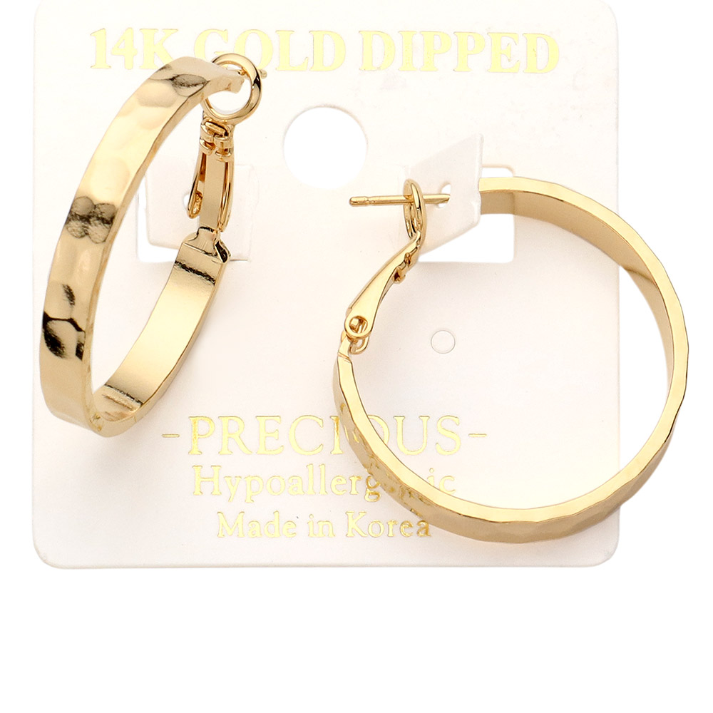 14K Gold Dipped Hammered Metal Hoop Earrings