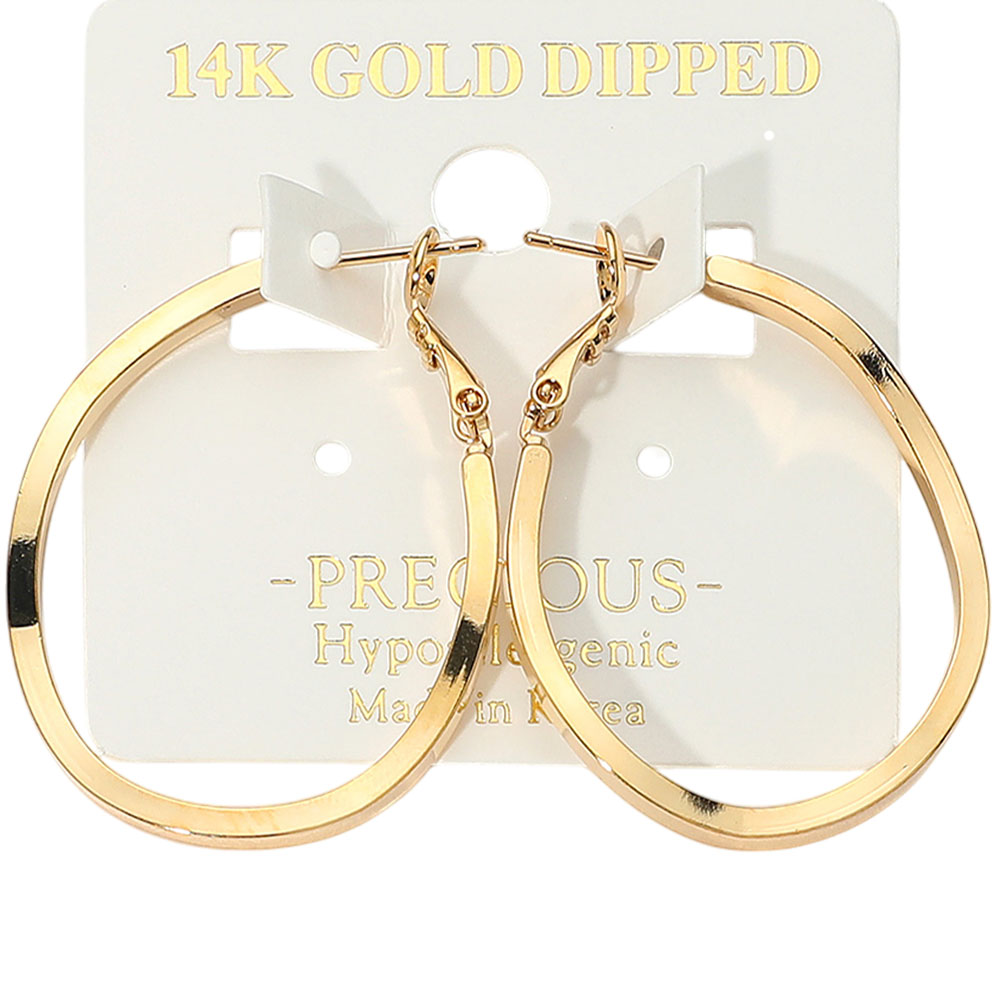 Details • Size : 1.25" X 1.6" • Omega Back • Chic flat oval hoop earrings with a sleek, polished finish and secure latch clasp. These minimalist hoops offer a modern shape and comfortable wear, perfect for elevating casual or dressy outfits with ease. • Gold Dipped • Hypoallergenic • Made In Korea