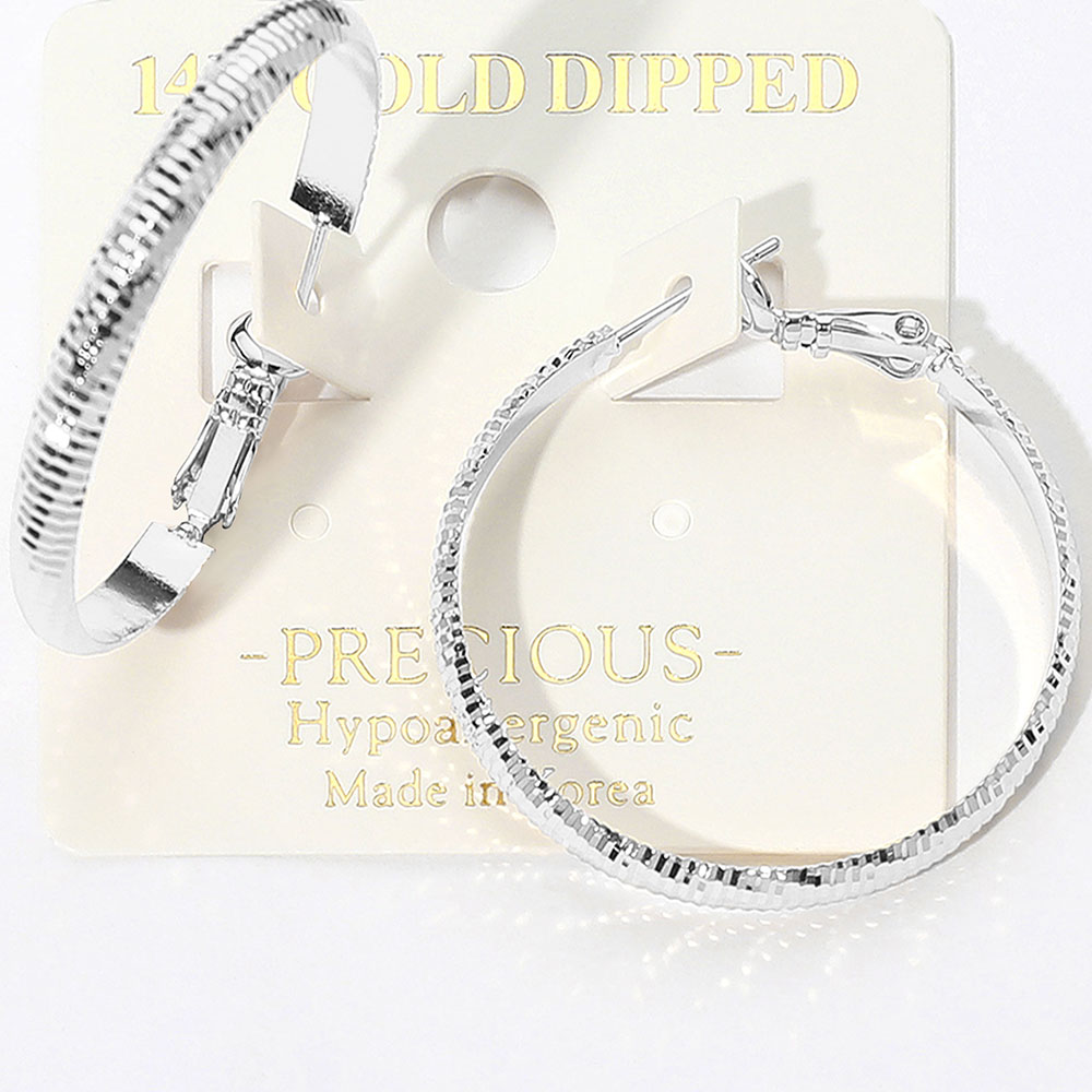 14K Gold Dipped Hypoallergenic Textured Hoop Earrings