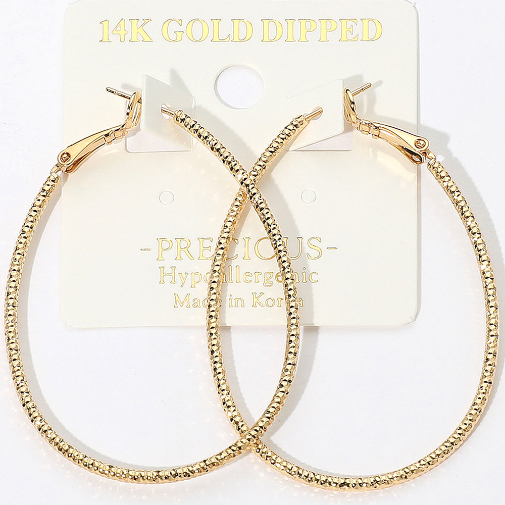 14K Gold Dipped Hypoallergenic Textured Metal Teardrop Hoop Earrings