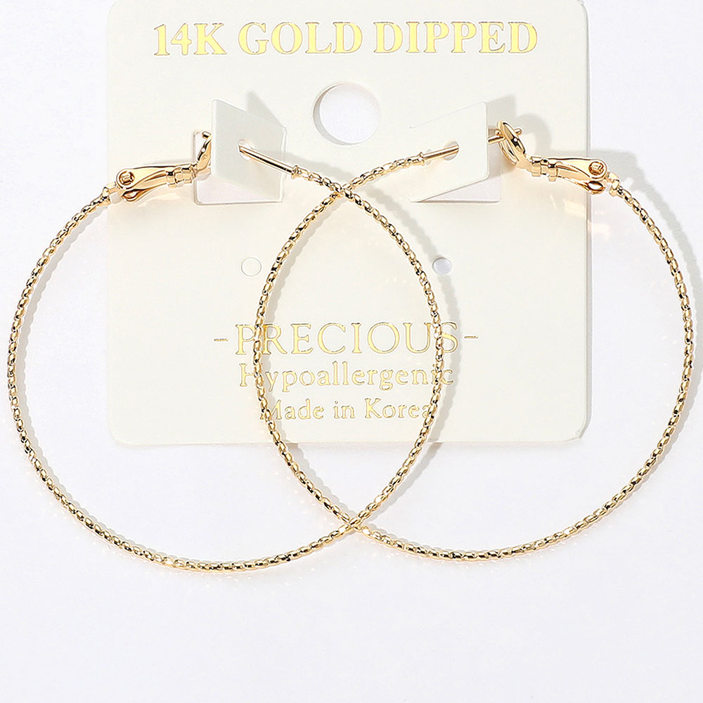 • Lightweight hoop earrings featuring a thin, textured surface for a stylish statement. Designed for comfort and elegance, these hoops are perfect for daily wear or special events. An easy match for casual and dressy looks alike.