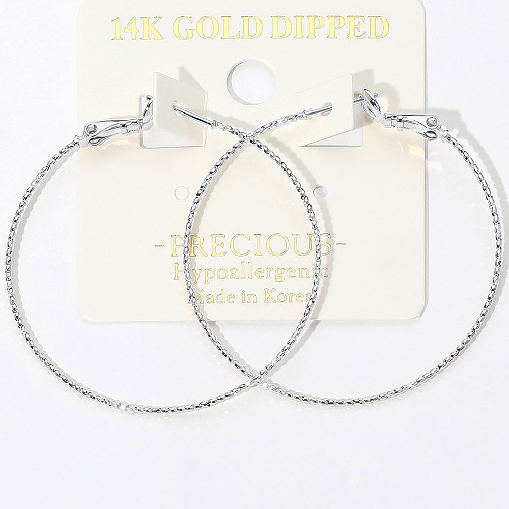 Details • Size : 1.8" X 1.75" • Omega Back • Lightweight hoop earrings featuring a thin, textured surface for a stylish statement. Designed for comfort and elegance, these hoops are perfect for daily wear or special events. An easy match for casual and dressy looks alike. • Hypoallergenic • Made In Korea • Gold Dipped