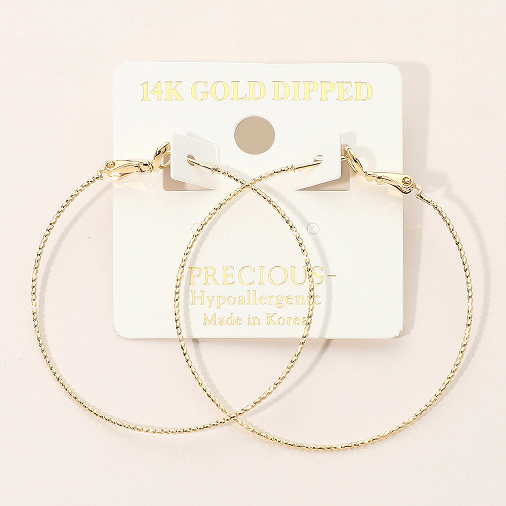 • Lightweight hoop earrings featuring a thin, textured surface for a stylish statement. Designed for comfort and elegance, these hoops are perfect for daily wear or special events. An easy match for casual and dressy looks alike.