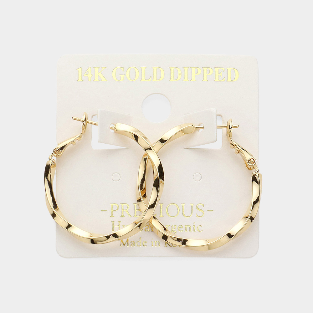 14K Gold Dipped Hypoallergenic Twisted Hoop Earrings