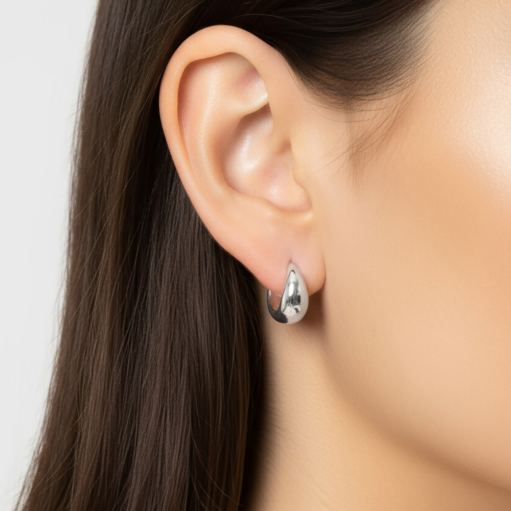 • Elevate your everyday look with these teardrop huggie earrings featuring a smooth, polished finish. Their sleek and modern silhouette adds timeless charm, making them a versatile accessory for both casual outfits and sophisticated occasions.