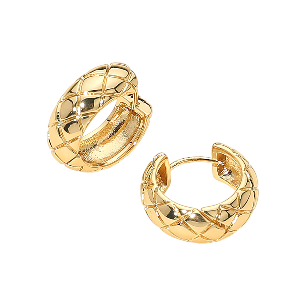 • Stylish quilt pattern huggie hoop earrings with a bold, textured design that elevates any look. Their compact size makes them ideal for everyday wear while still offering a touch of elegance, blending modern charm with timeless appeal for versatile accessorizing.
