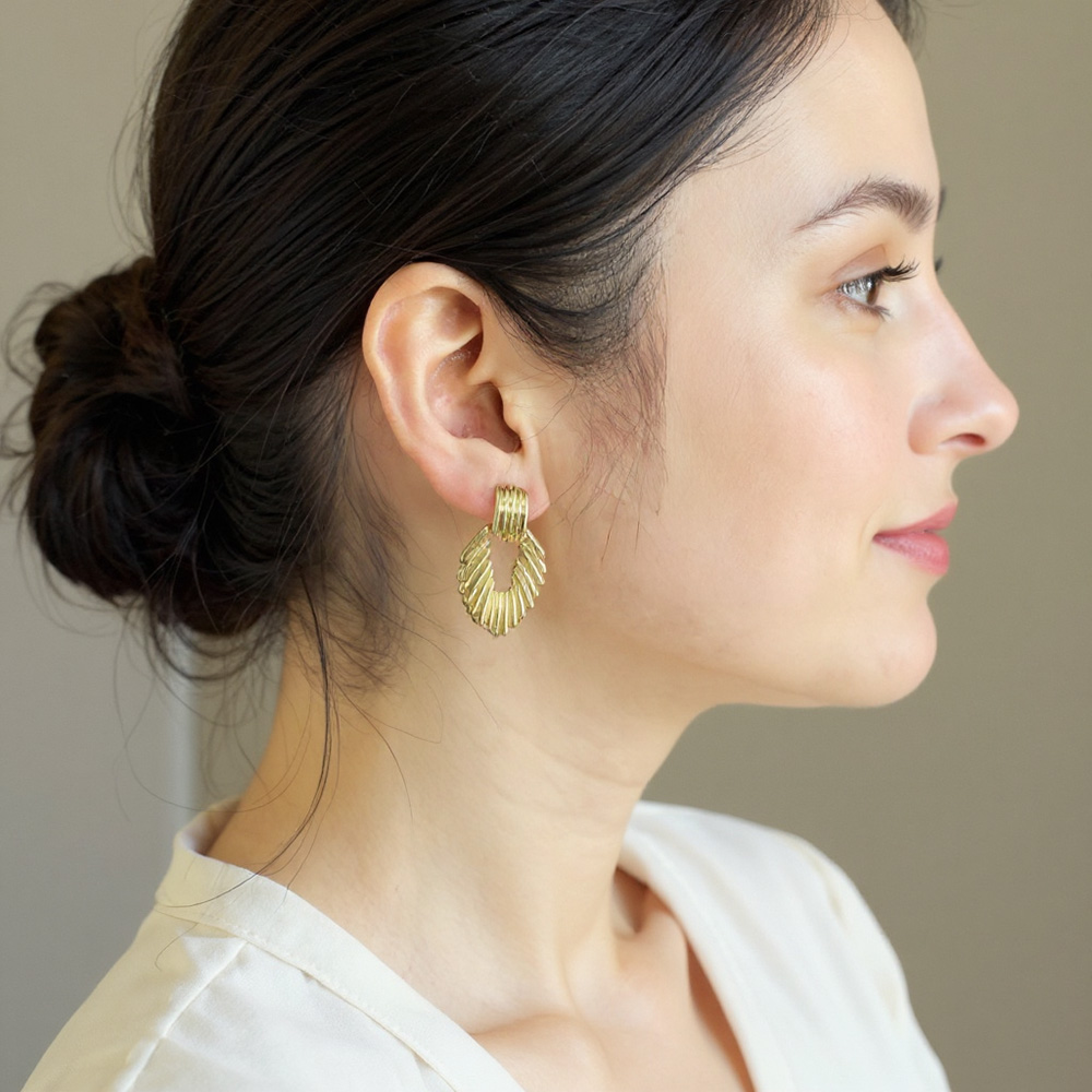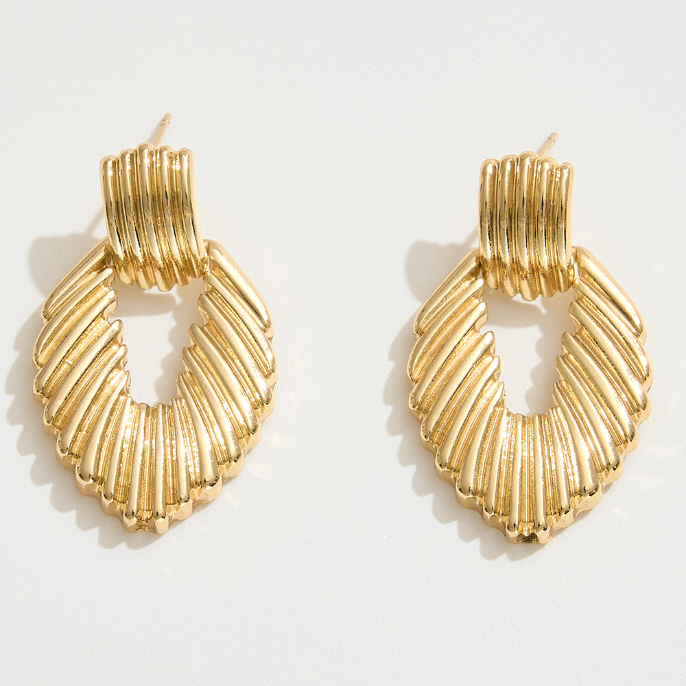 14K Gold Dipped Ribbed Teardrop Door Knocker Earrings