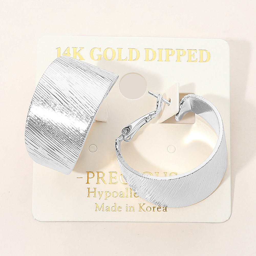 Details • Size : 1" X 1" X 0.6" • Omega Back • Elevate your everyday look with these textured wide hoop earrings featuring a sculpted, dimensional design for bold yet wearable style. Lightweight and comfortable for all-day wear, they transition effortlessly from casual outfits to evening ensembles, making them a versatile accessory or thoughtful gift for confident, modern flair. • Gold Dipped • Hypoallergenic • Made In Korea