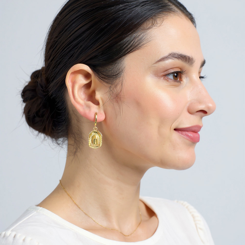 Details • Size : 0.5" X 1.3" • Huggie Back • These cowboy hat dangle hoop earrings bring playful western charm to your jewelry collection. Featuring detailed hat pendants that swing from sleek hoops, they’re perfect for adding a fun, standout accent to casual outfits, festivals, or themed events. • Brass • Gold Dipped • Hypoallergenic • Lead and Nickel Compliant • Made In Korea