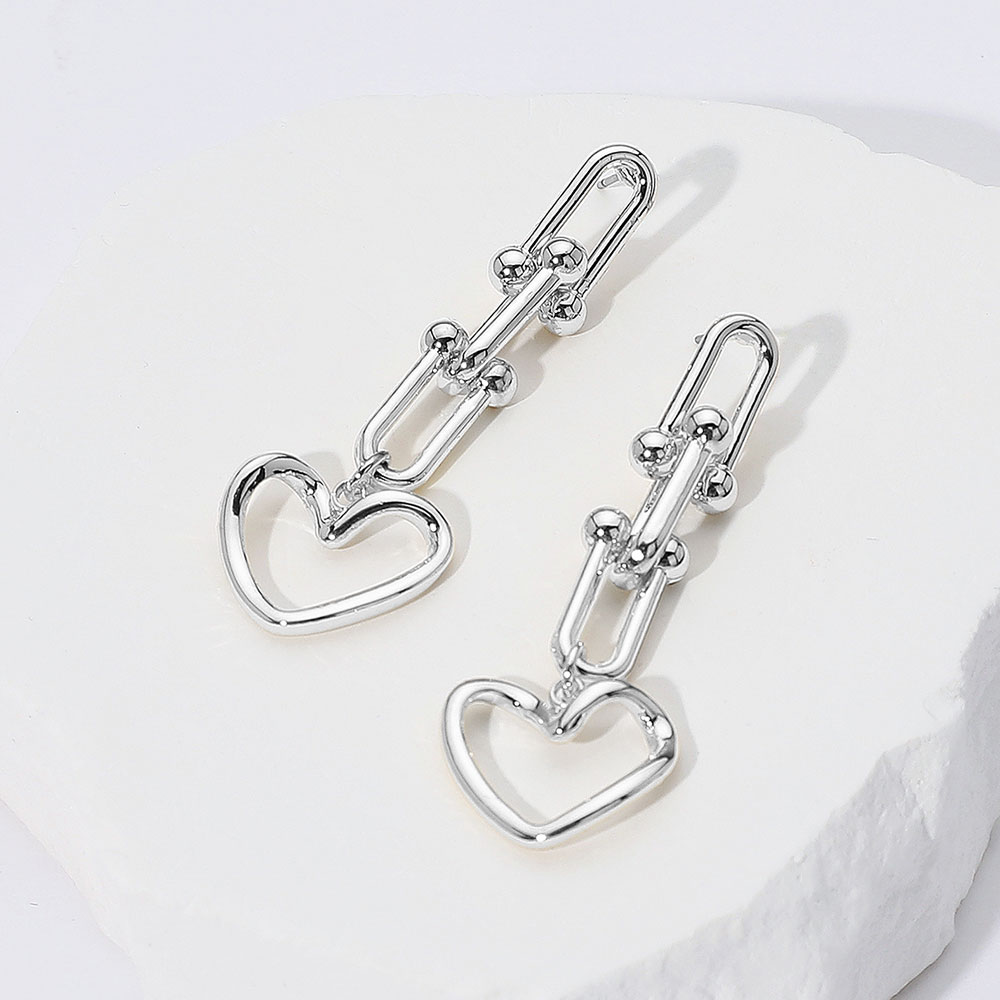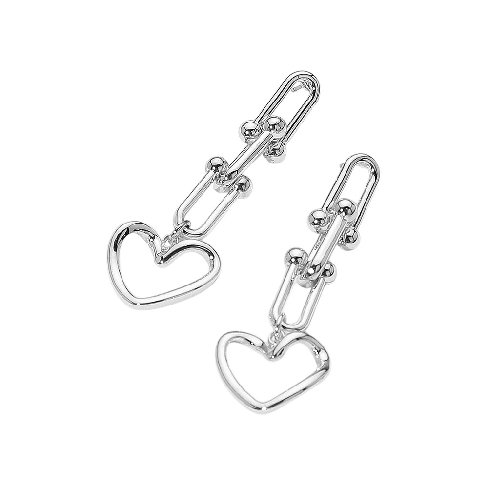 14K Gold Plated Industrial Chain Open Heart Link Drop Earrings