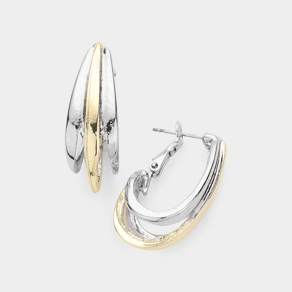 14K Gold Plated Two Tone Abstract Metal Hoop Earrings