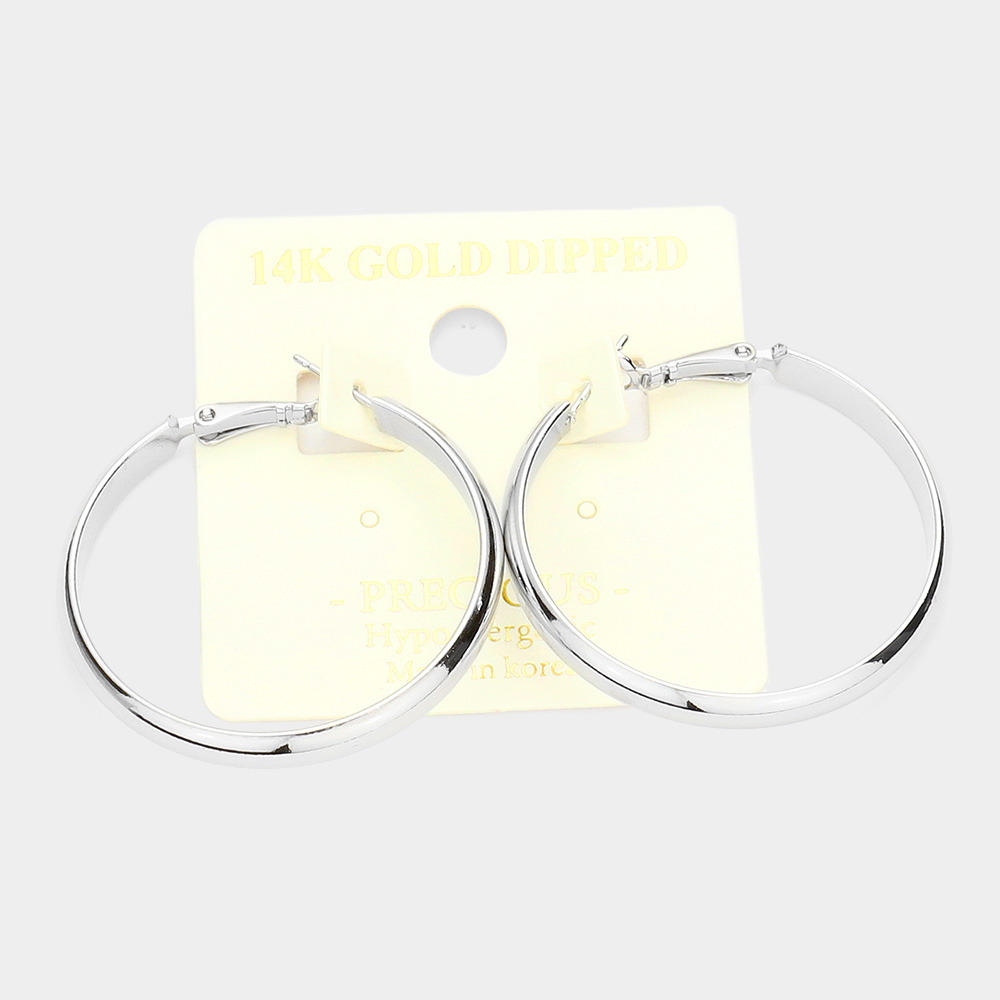 14K White Gold Dipped 1.5 Inch Metal Hoop Earrings