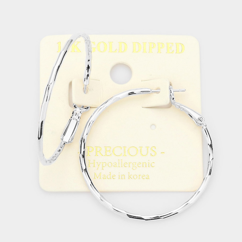 14K White Gold Dipped 1.5 Inch Textured Metal Hoop Earrings