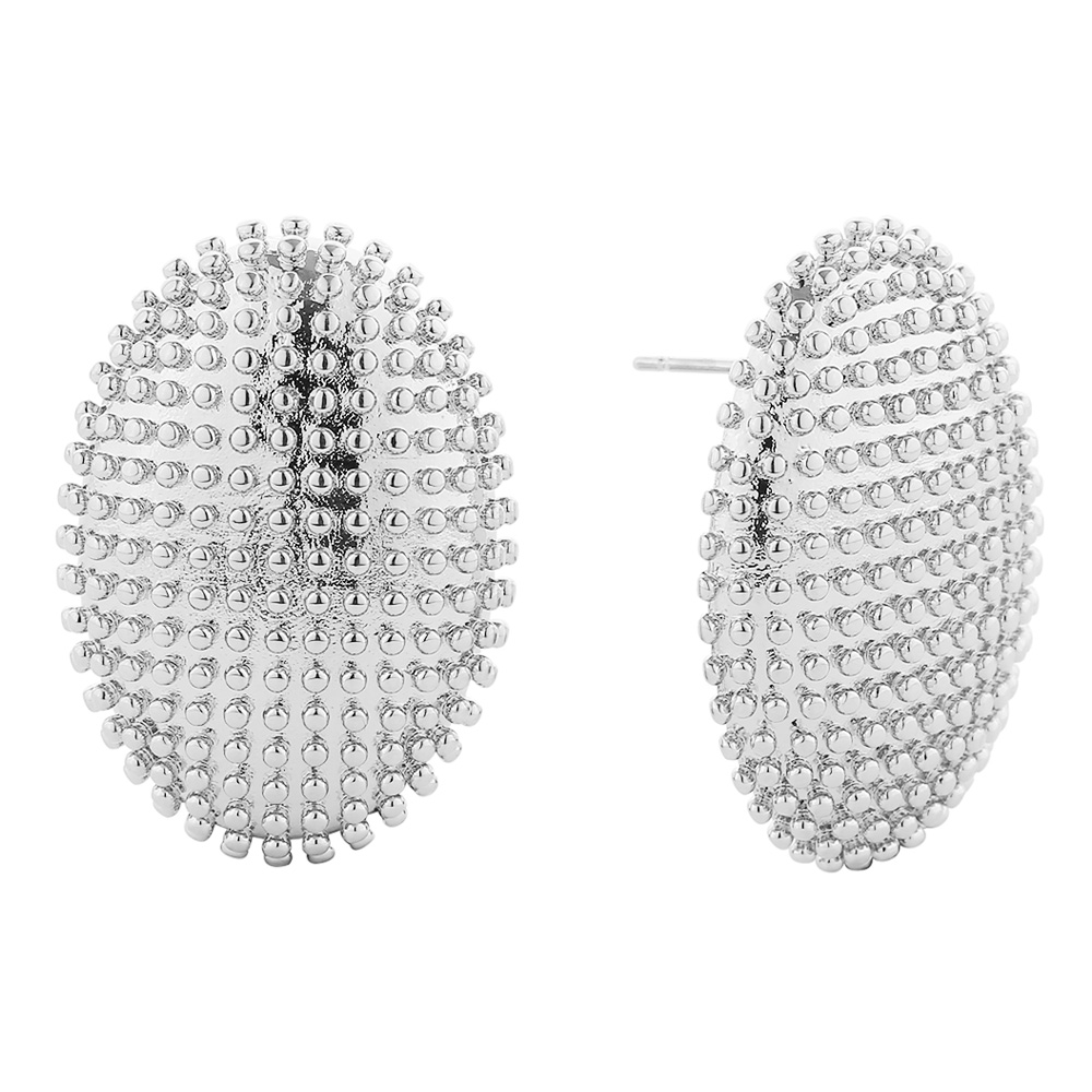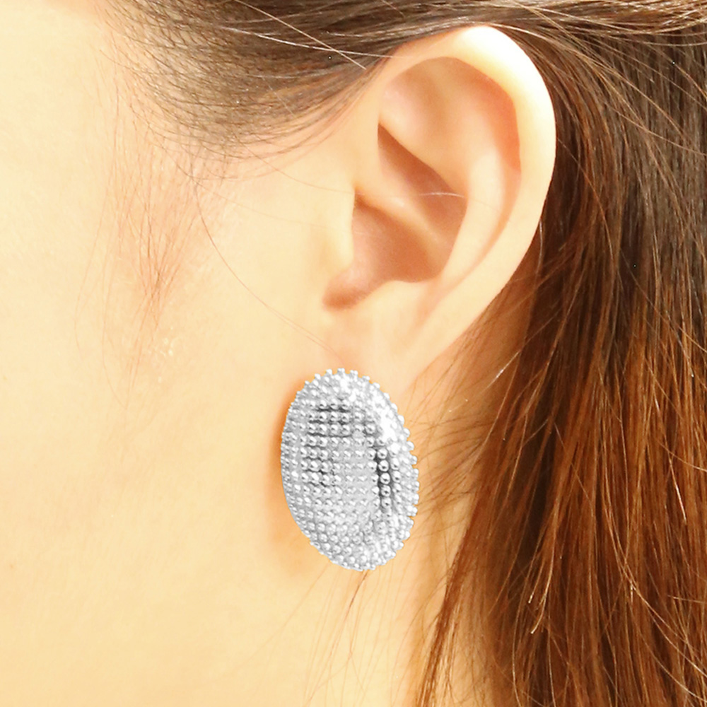 14K White Gold Dipped Beaded Oval Earrings