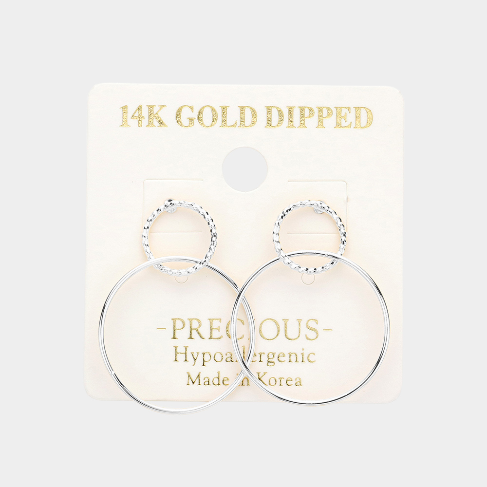 14K Gold Dipped Double Open Metal Circle Link Earrings