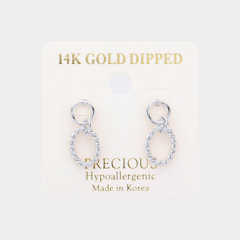 14K White Gold Dipped Hypoallergenic Textured Metal Earrings