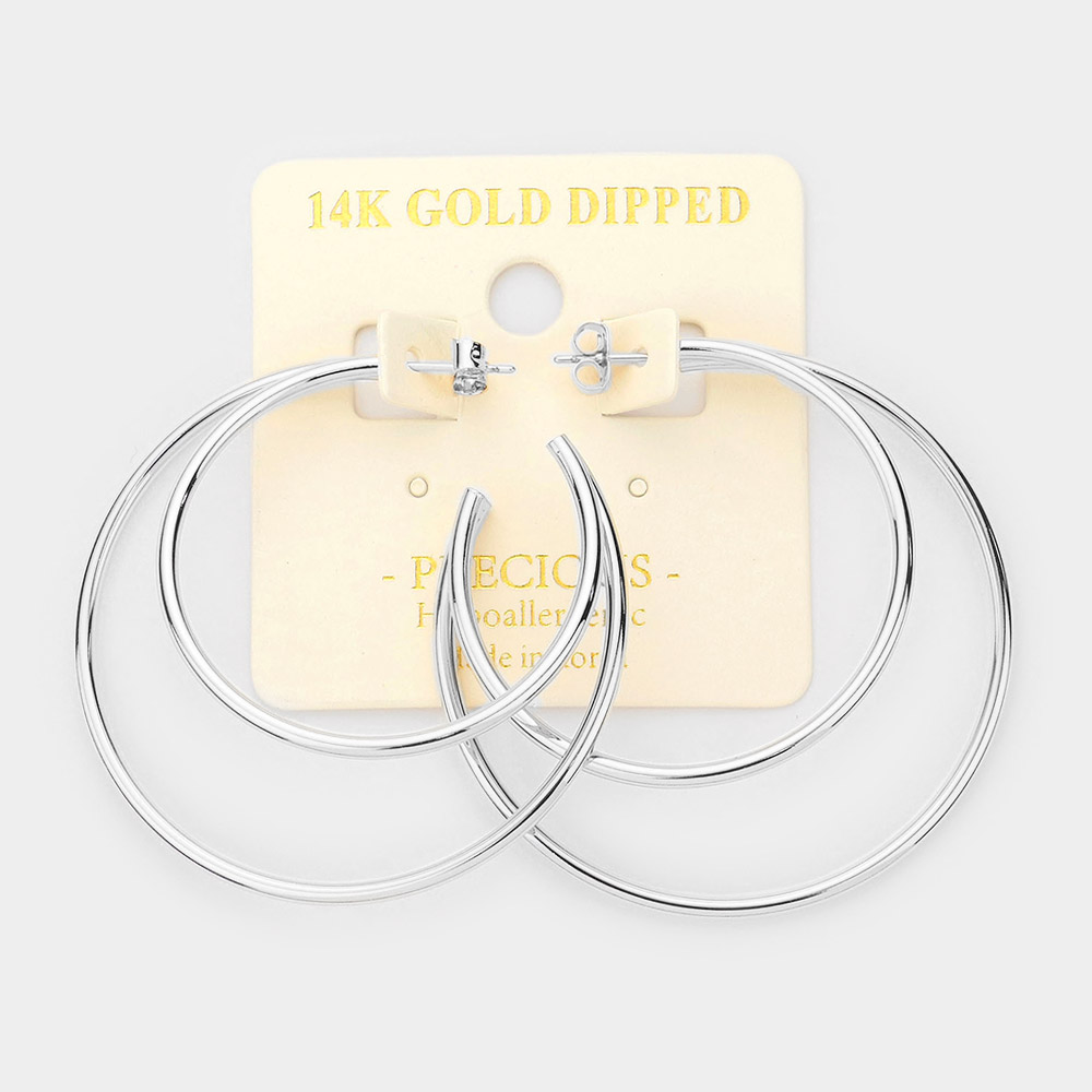 14K White Gold Dipped Metal Hoop Earrings