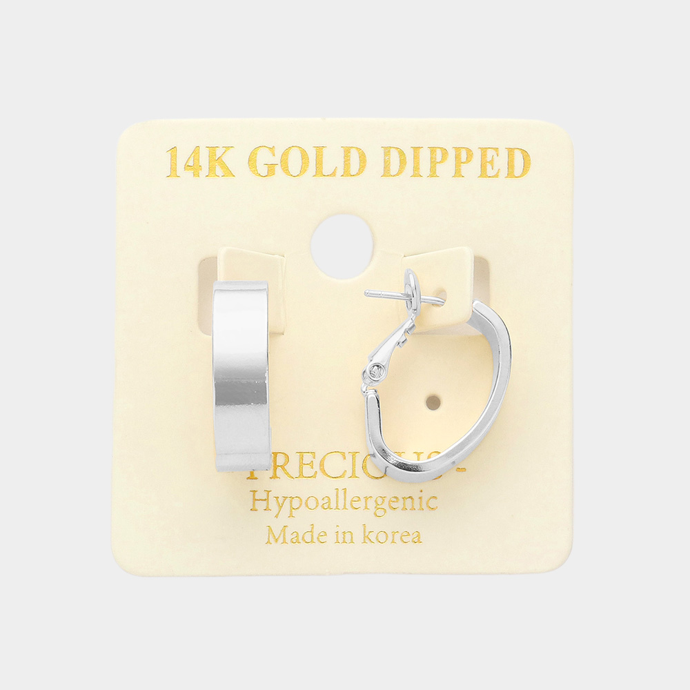 14K White Gold Dipped Metal Oval Hoop Earrings