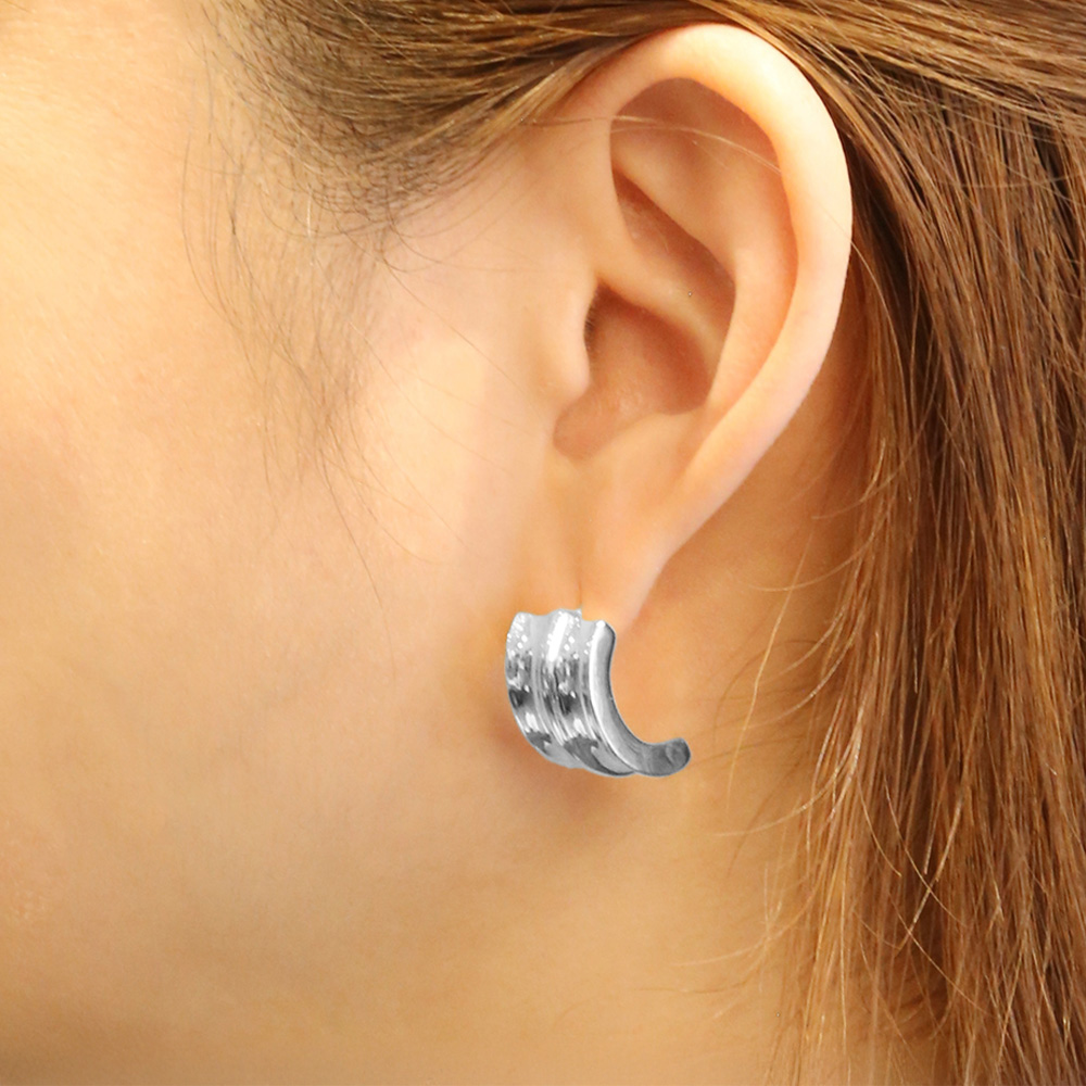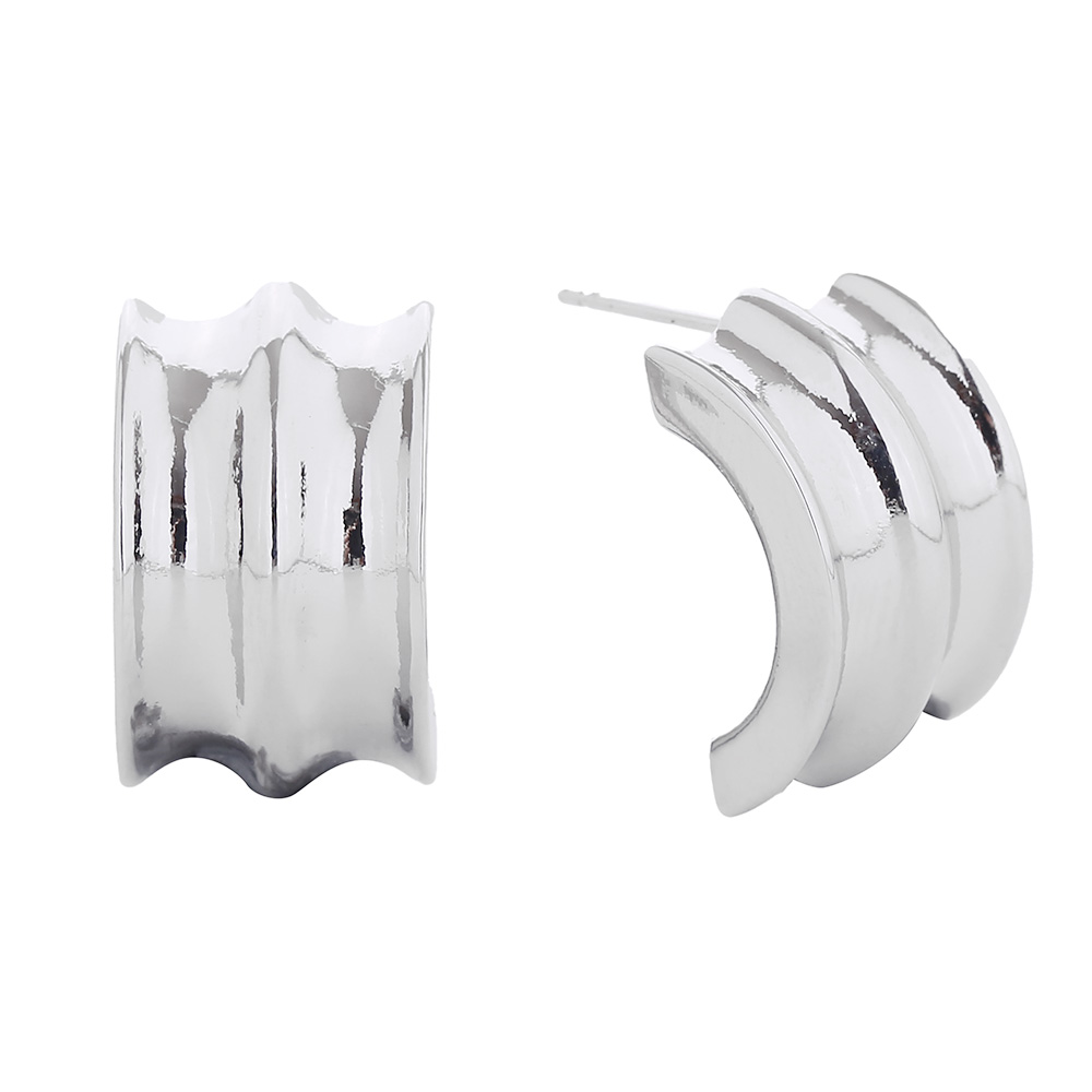 14k White Gold Dipped Sculpture Modern Hoop Earrings