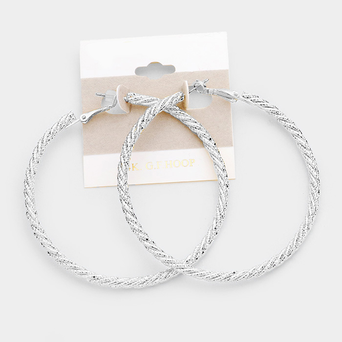 14k White Gold Filled Twisted Textured Hoop Earrings