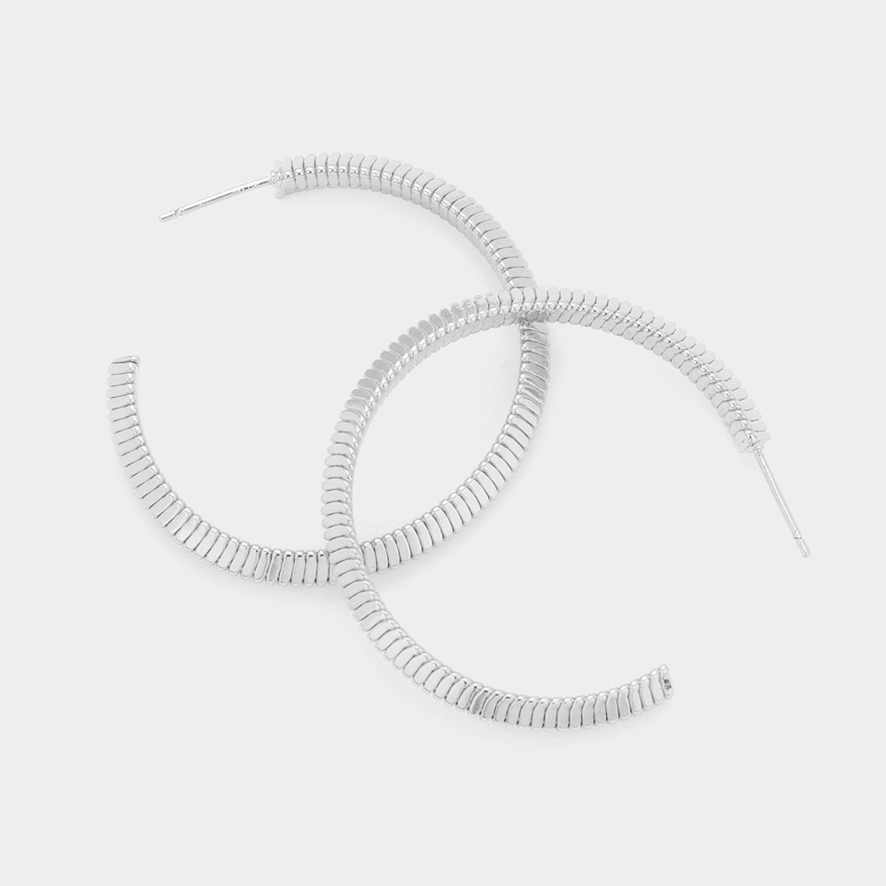 2 Inch Textured Brass Metal Hoop Earrings